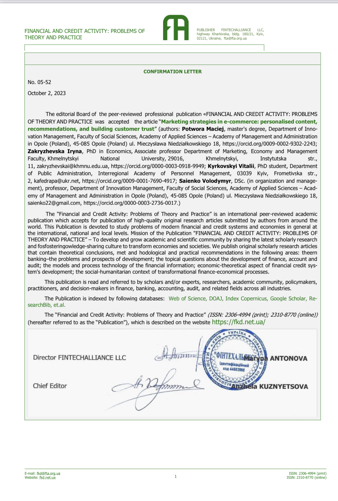 Публікацію аспіранта кафедра публічного адміністрування МАУП В.Кирковського на тему "Сучасних маркетингових технологій" прийнято до друку в виданні, що входить у наукометричну базу Scopus! Визнання роботи цього аспіранта свідчить про його високий науковий рівень і важливість дослідження, яке він провів. Scopus є однією з найпрестижніших наукометричних баз, тому це величезний досягнення для В.Кирковського та його подальшої наукової кар'єри.