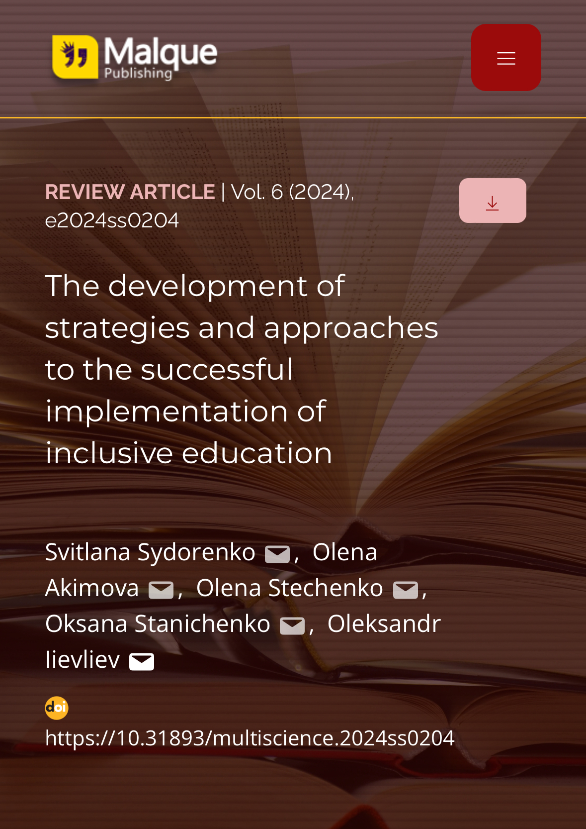Запрошуємо ознайомитися: Sydorenko, S., Akimova, O., Stechenko, O., Stanichenko, O., & Iievliev, O. (2024). The development of strategies and approaches to the successful implementation of inclusive education. Multidisciplinary Science Journal, 6, 2024ss0204. https://doi.org/10.31893/