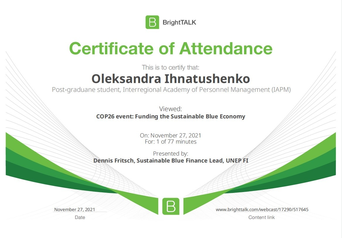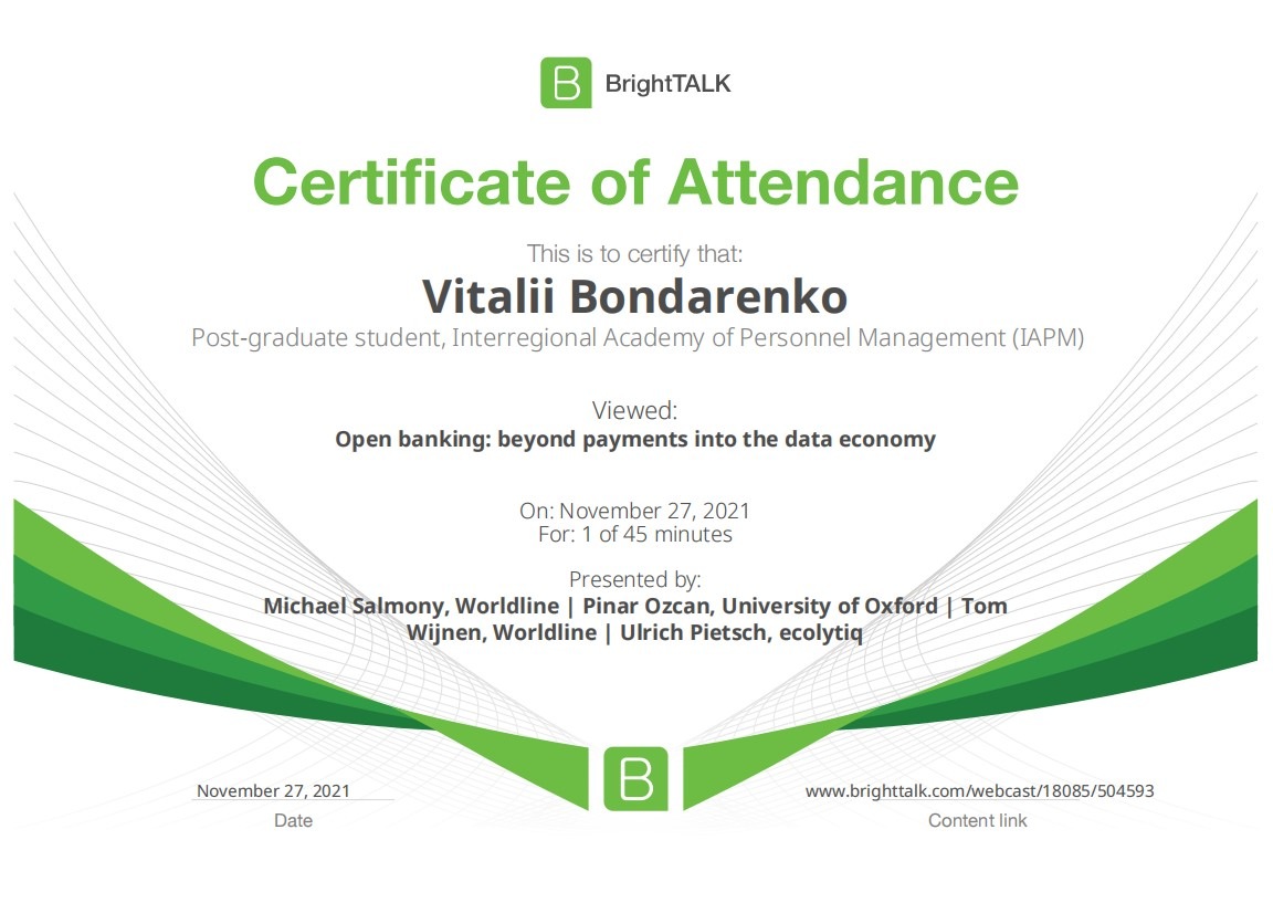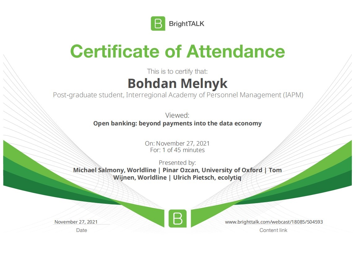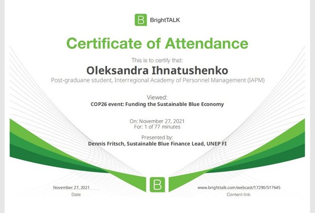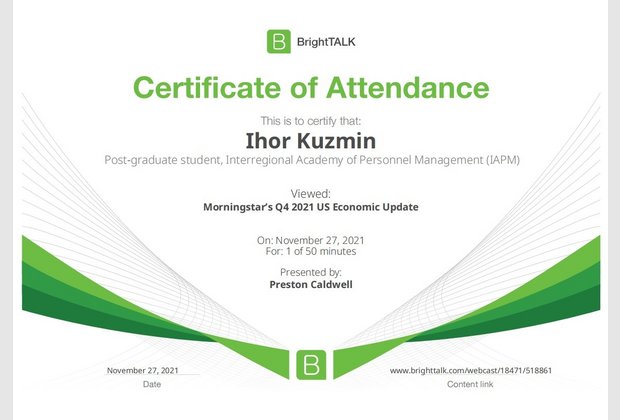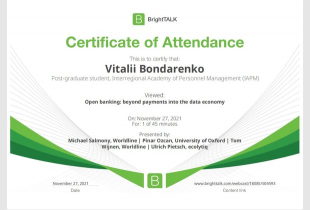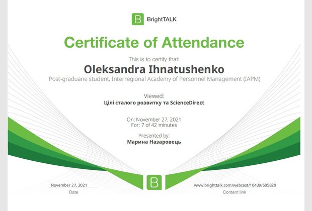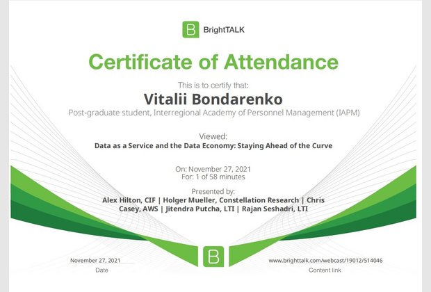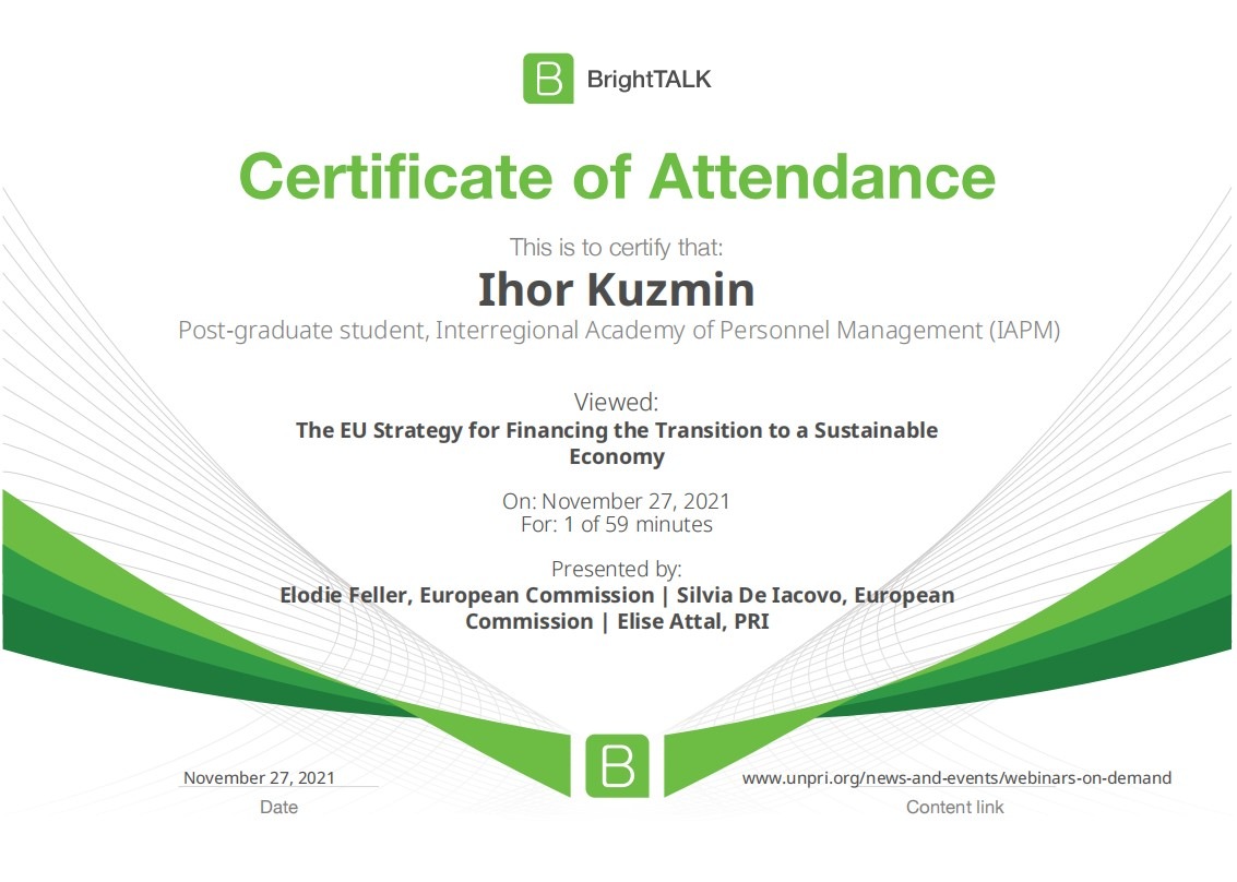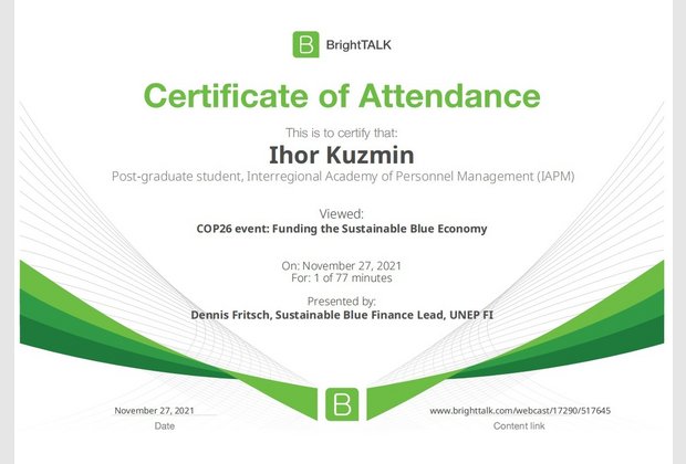 26 та 27 листопада здобувачі освітньо-наукової програми "Економіка" ННІУЕБ долучилися до Марафону неформальної освіти. Участь у заході передбачала прослуховування та роботу із кількома вебінарами англійською та українською мовами на освітньо-науковій платформі BrightTALK. Викладачі ОНП були приємно вражені активністю наших аспірантів. За результатами такого неформального навчання молоді дослідники отримають можливість визнання результатів навчання на платформі BrightTALK як зарахування вивчених окремих тем/модулів зі змісту дисциплін освітньої складової ОНП.