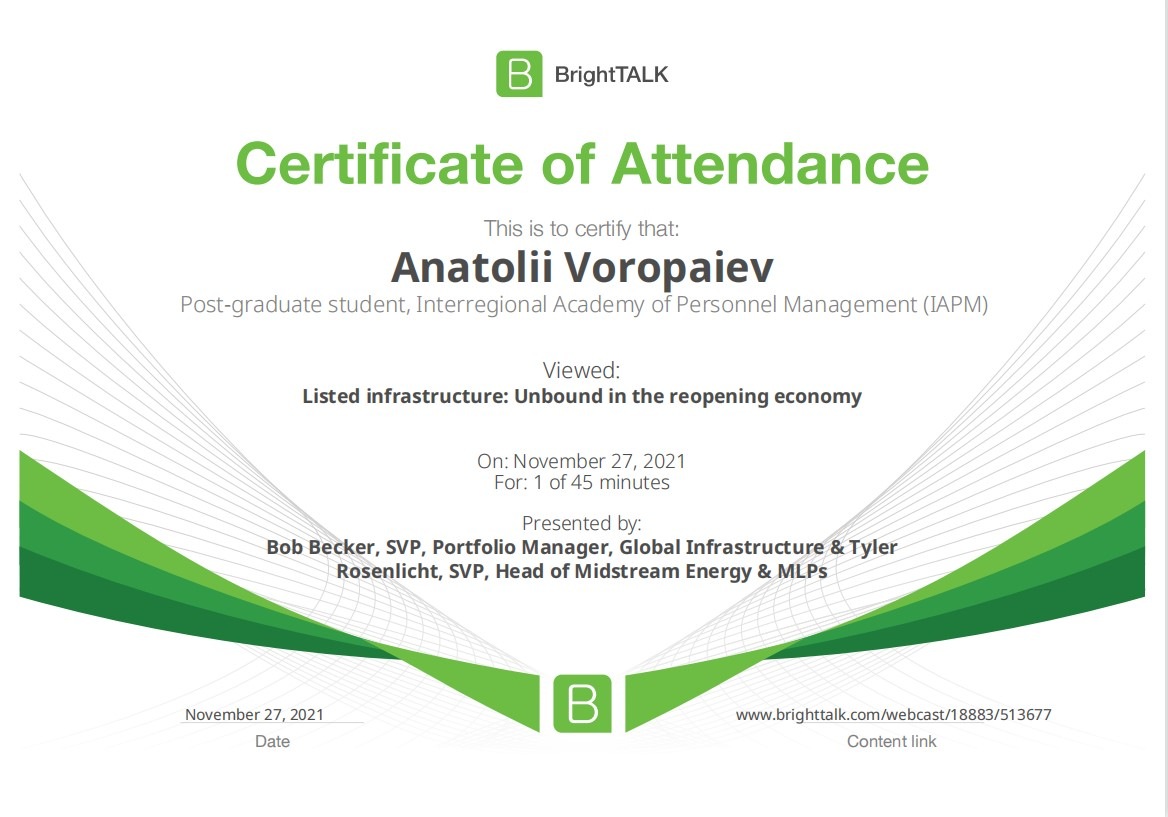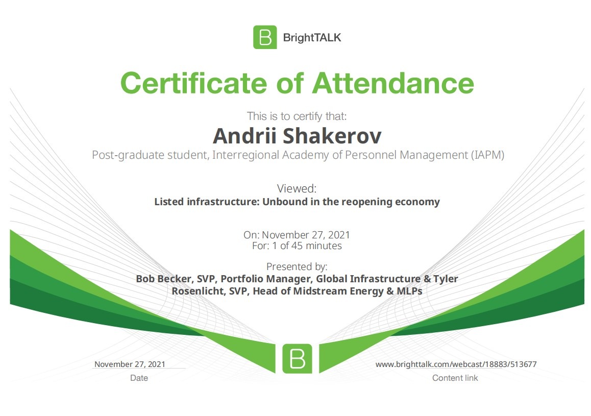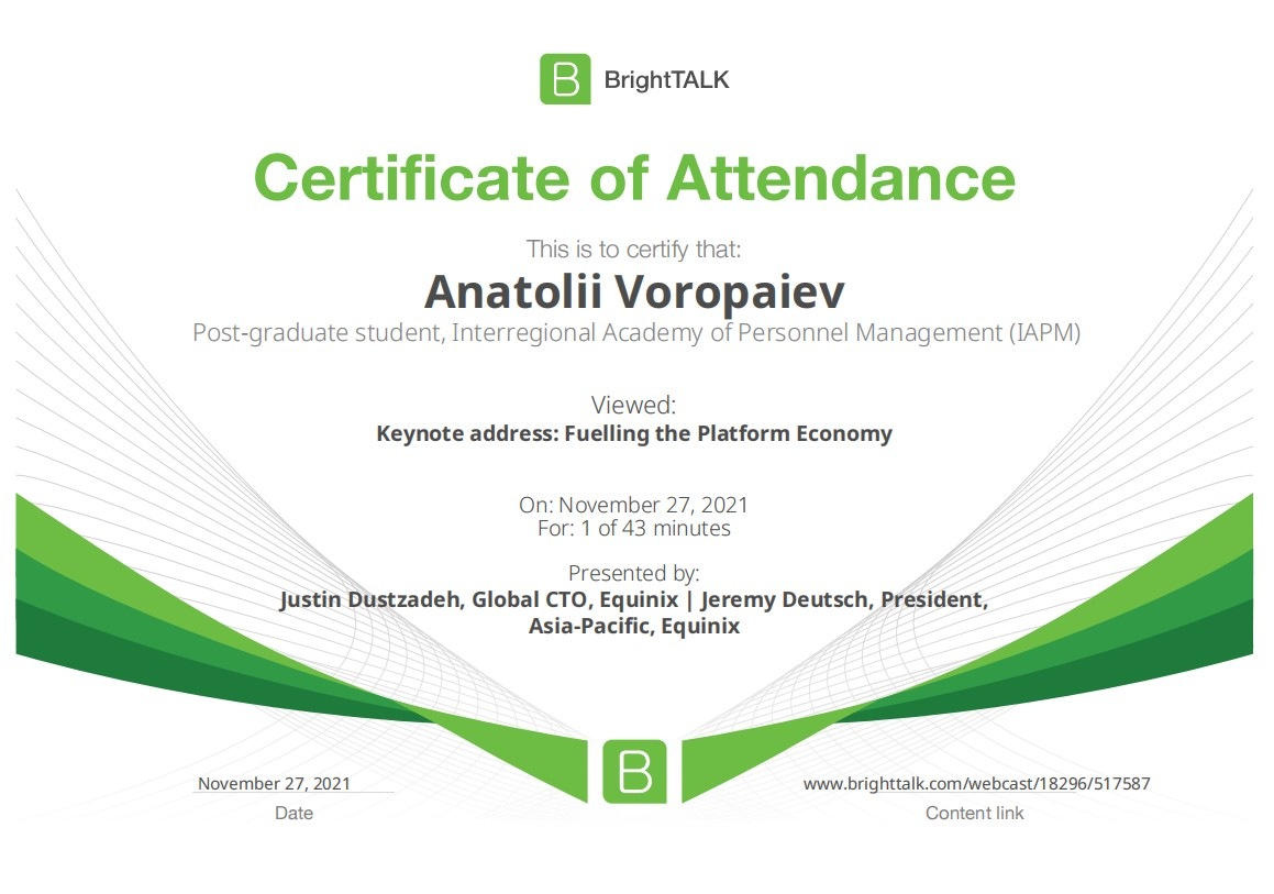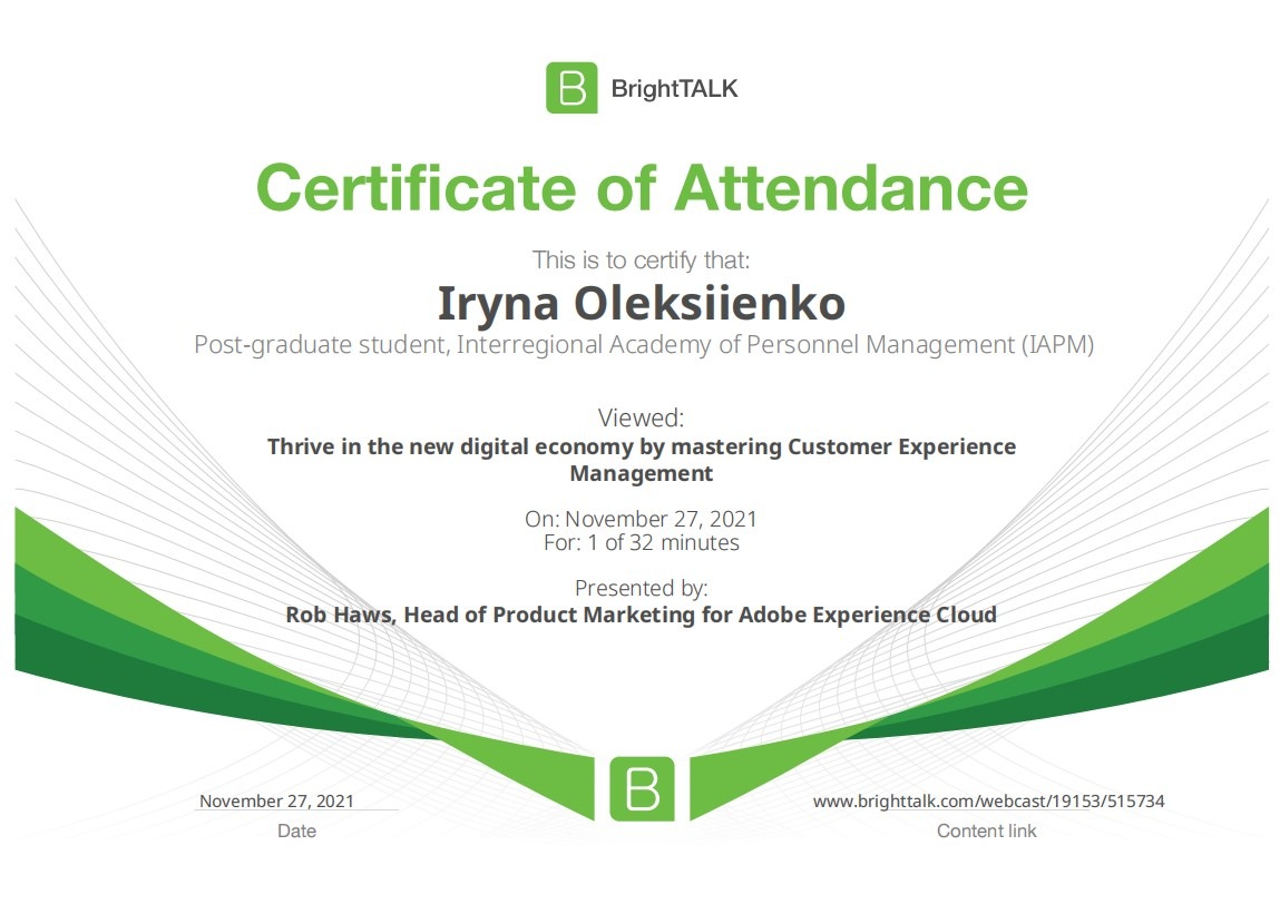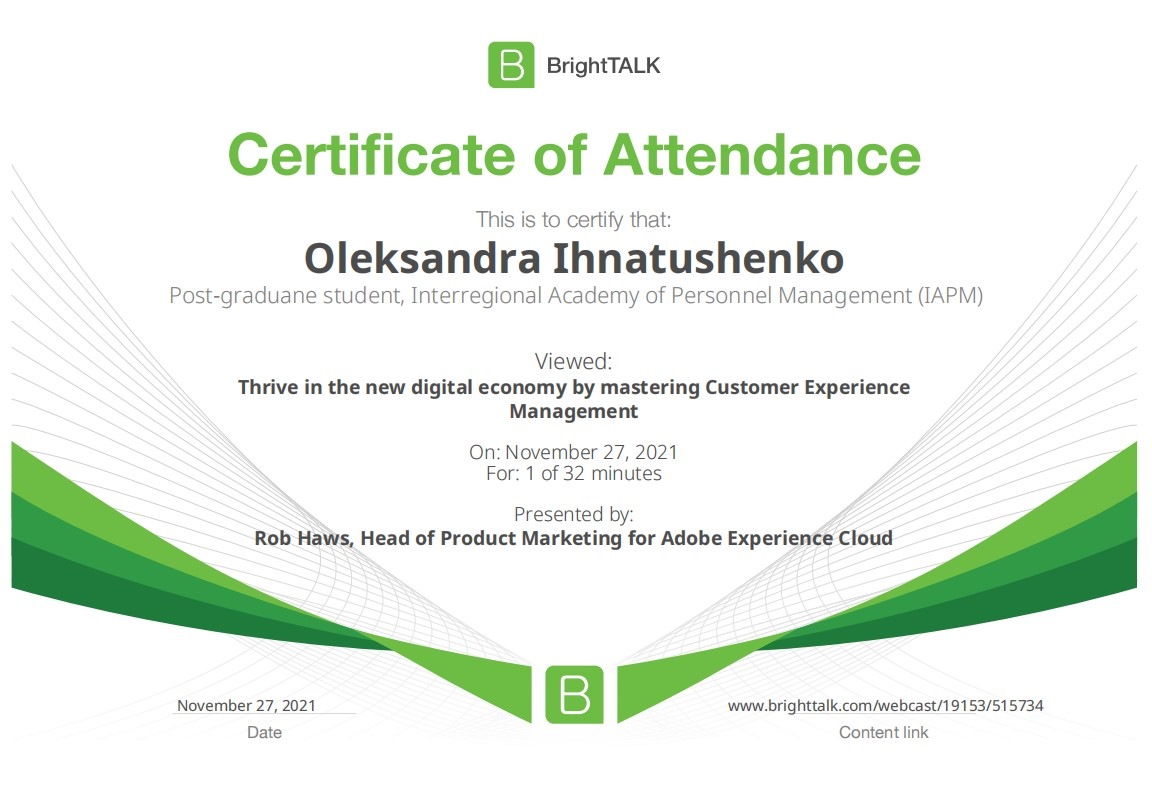 26 та 27 листопада здобувачі освітньо-наукової програми "Економіка" ННІУЕБ долучилися до Марафону неформальної освіти. Участь у заході передбачала прослуховування та роботу із кількома вебінарами англійською та українською мовами на освітньо-науковій платформі BrightTALK. Викладачі ОНП були приємно вражені активністю наших аспірантів. За результатами такого неформального навчання молоді дослідники отримають можливість визнання результатів навчання на платформі BrightTALK як зарахування вивчених окремих тем/модулів зі змісту дисциплін освітньої складової ОНП.