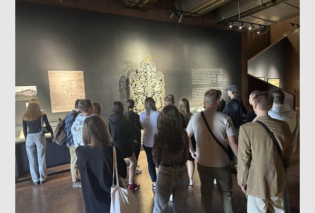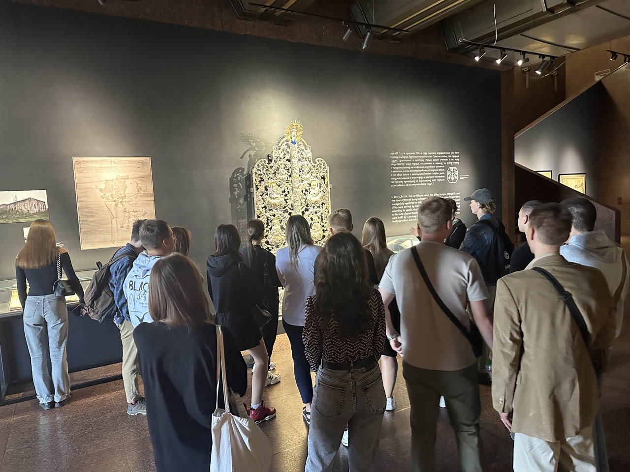 Студенти ННІУЕБ відвідали історичні виставки на тему російсько-української війни та піднялися в основу пʼєдесталу Батьківщина-мати