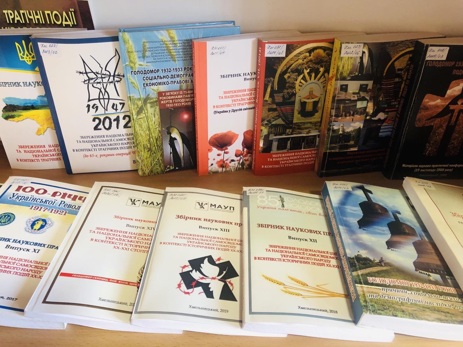 Наукові дослідження питань Голодоморів в Україні у Хмельницькому інституті МАУП розпочали ще у 2002 році. Однією з науково-дослідних тем Інститут є тема: «Збереження національної ідеї та національної самосвідомості українського народу в контексті історичних подій ХХ- ХХІ століть». За 20 років Інститутом спільно з Державним архівом Хмельницької області організовано двадцять всеукраїнських науково-практичних конференцій http://www.maup.km.ua/institut/naukova-robota/naukovi-zahodi/ , видано чотирнадцять випусків збірників наукових праць http://www.maup.km.ua/institut/naukova-robota/naukovi-vidannya/