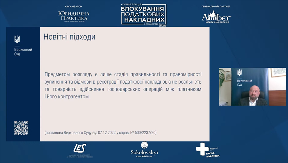 Модераторами були: Наталія БЛАЖІВСЬКА, суддя Касаційного адміністративного суду у складі Верховного Суду, д.ю.н. та Семен ХАНІН, керуючий партнер ЮК «АМБЕР», к.е.н.