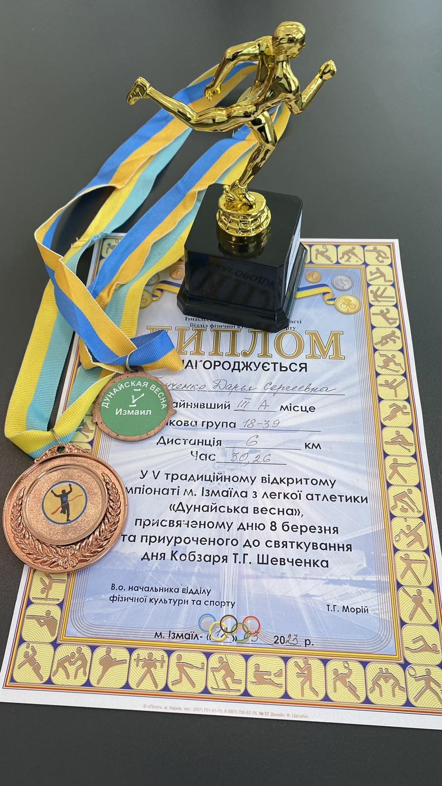 12.03.2023 р. здобувачка вищої освіти Придунайської філії ПрАТ "ВНЗ "МАУП" Панченко Дар'я взяла участь у V традиційному відкритому чемпіонаті м. Ізмаїла з легкої атлетики "Дунайська весна", приуроченого до святкування дня Кобзаря Т. Г. Шевченка, який проводив відділ фізичної культури й спорту Ізмаїльської міської ради Ізмаїльського району Одеської області.