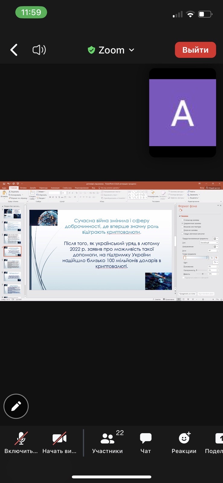 Сливка Оксана Андріївна, кандидат економічних наук, доцент, кафедра управління персоналом та економіки праці, Навчально-наукового інституту управління, економіки та бізнесу Міжрегіональної Академії управління персоналом виступила з доповіддю на тему «Освітній вимір людського розвитку України в період війни».
