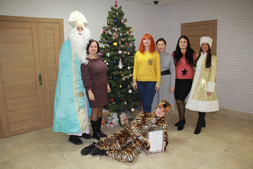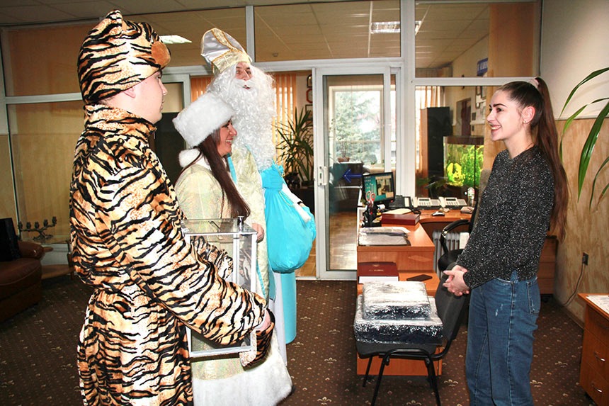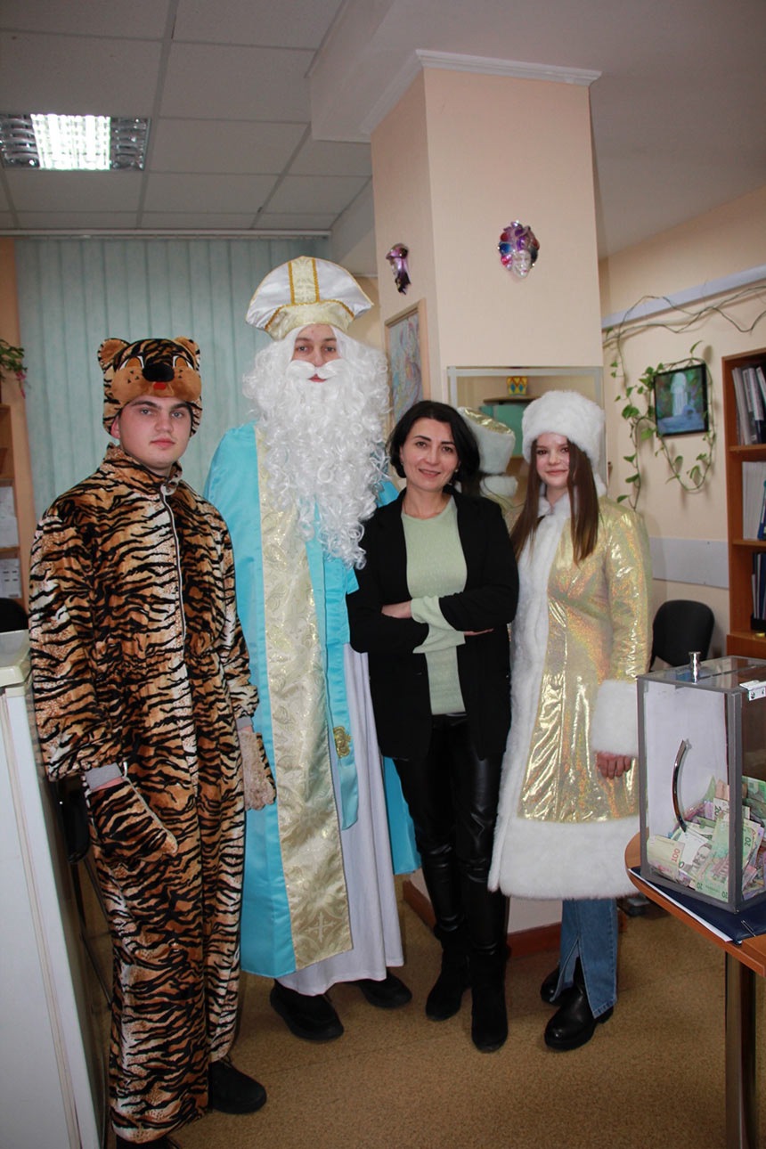 Микола Чудотворець і Снігурка з символом нового року Тигром пропонували долучитися до благодійної акції. Всіх охочих теж чекав сюрприз: чарівне печиво з передбаченнями та можливість сфотографуватись з новорічними героями.