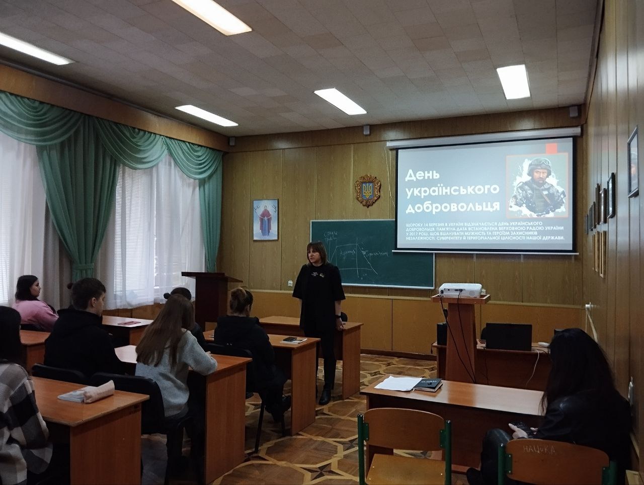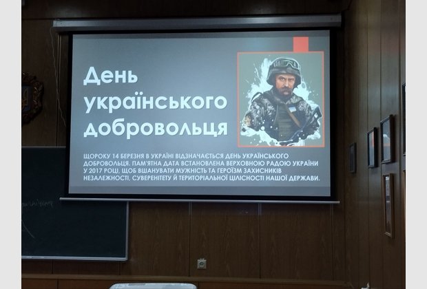 Сьогодні національний календар відзначає свято всіх, хто повстав проти окупантів, чинить опір російській агресії. Тому за сприяння кафедри права та правоохоронної діяльності відбулася лекція-бесіда про сучасних добровольців та історію добровольчого руху в Україні, після чого студенти переглянули документальну стрічку «Жах, який важко уявити! БРИГАДА». Документальний фільм розповідає про оборону Харкова.