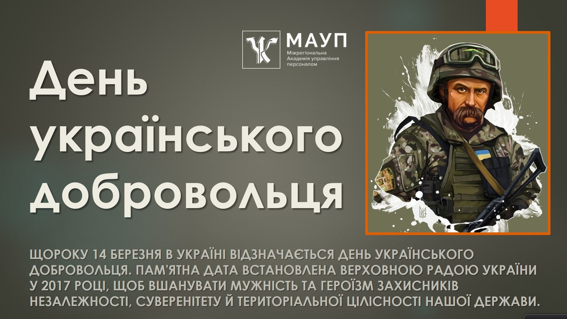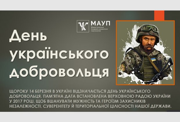 14 березня в Україні відзначають день добровольця. Серед працівників, студентів, випускників Хмельницького інституту та Хмельницького економіко-правового фахового коледжу МАУП чимало добровольців – це ті, що стали пліч-о-пліч захищати країну, рідних, близьких, земляків від російського війська.