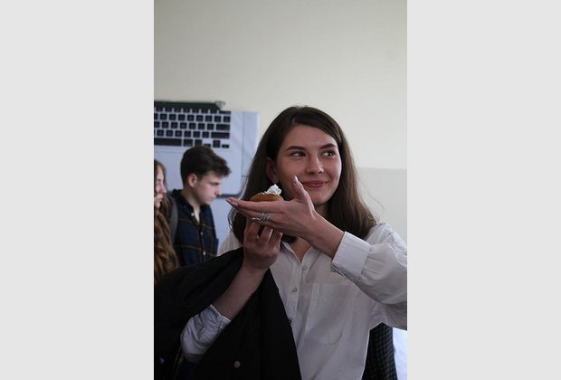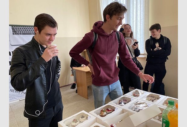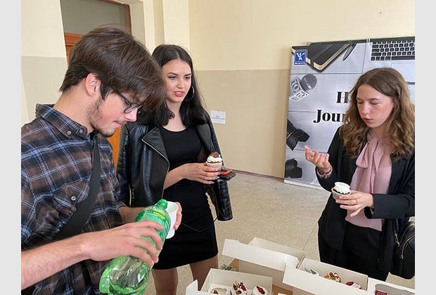 Студенти-журналісти та викладачі кафедри були запрошені до аудиторії, де їх чекав приємний сюрприз: солодкі капкейки, напої та фотозона, де кожен бажаючий міг сфотографуватися.