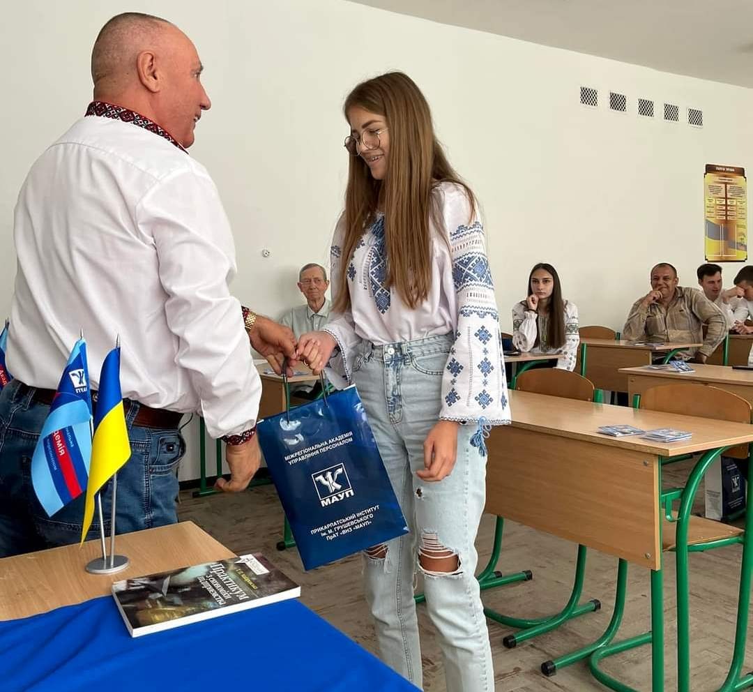 Студенти першого курсу та відмінники навчання, які були запрошені на урочистості, в подарунок від Академії отримали підручники та тематичні рюкзаки «МАУП»!