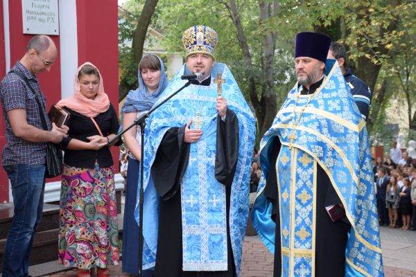 За багаторічною традицією свято Дня знань розпочалося молебнем біля каплиці Святого Георгія Побідоносця, який проводили протоієрей Діонісій Мартишин, доктор богословських наук, професор МКА та протоієрей Сергій Коцар, кандидат богослов’я, ад’юнкт-професор МКА. У своєму вітальному слові отець Діонісій Мартишин зазначив: