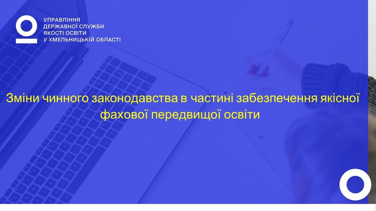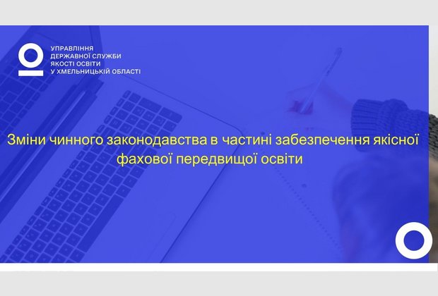 Управлінням Державної служби якості освіти у Хмельницькій області організовано та проведено вебінар з керівниками закладів фахової передвищої освіти "Зміни чинного законодавства в частині забезпечення якісної фахової передвищої освіти".