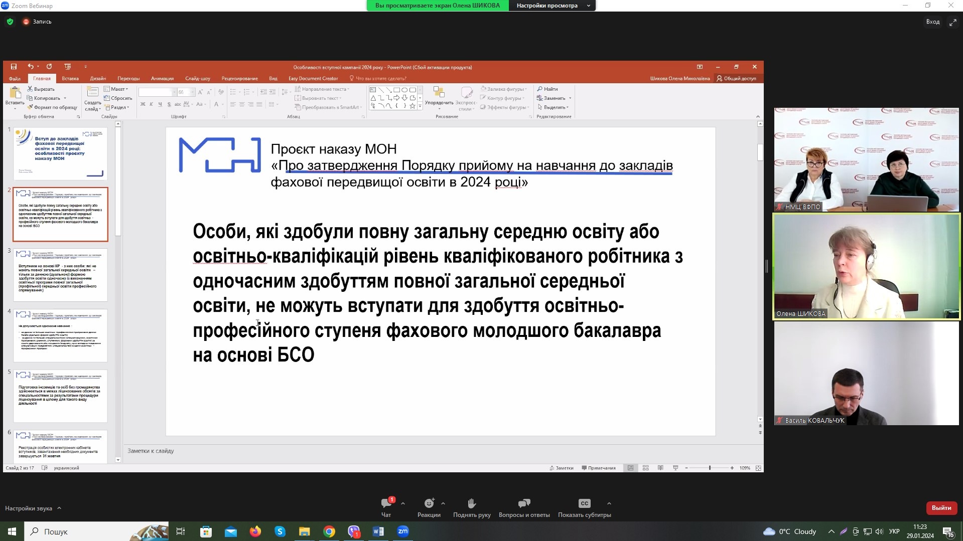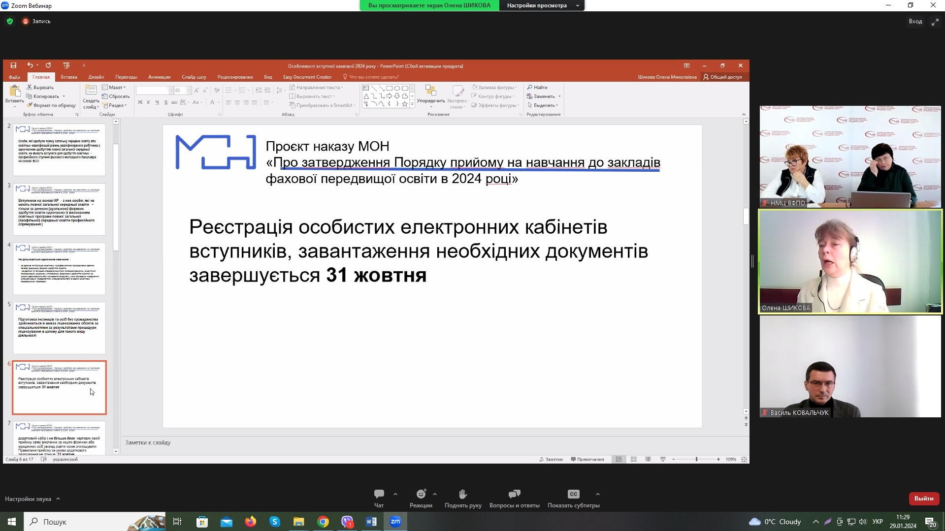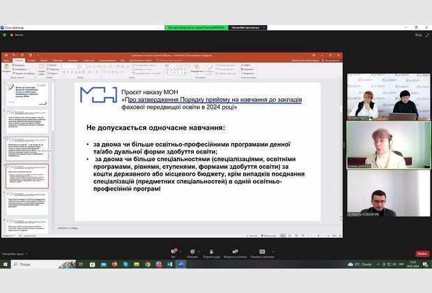 Директор Хмельницького економіко-правового фахового коледжу МАУП взяла участь в обговоренні проєкту Умов вступу до закладів ФПВО – 2024