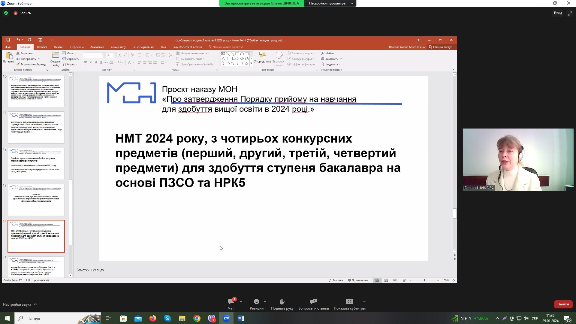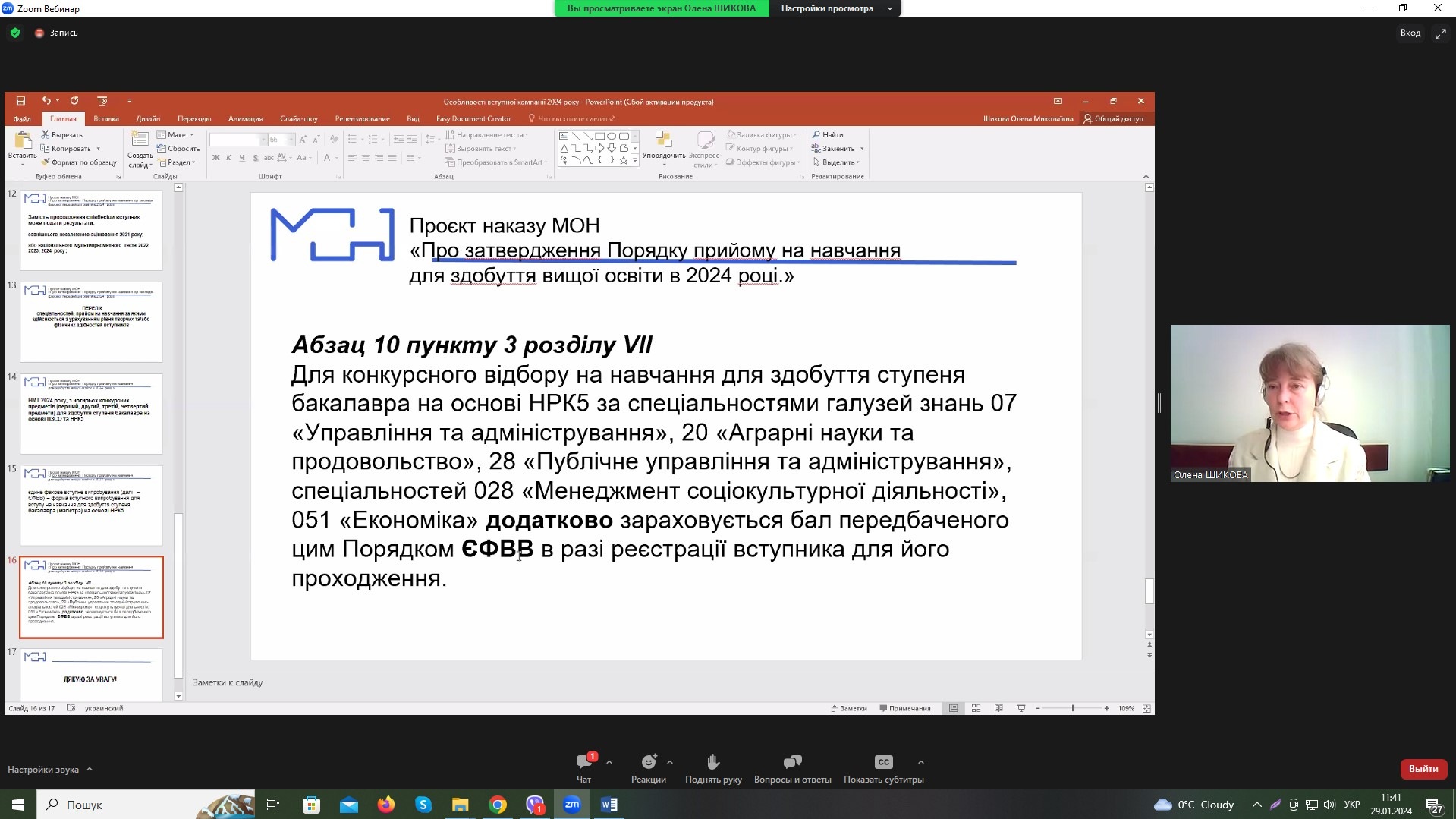 В рамках програми підвищення кваліфікації керівників закладів фахової передвищої освіти, що організовано Науково-методичним центром вищої та фахової передвищої освіти відбулося обговорення проєкту Умов вступу до закладів ФПВО у якому взяла участь директор Хмельницького ЕПФ коледжу МАУП Валентина Парандій.