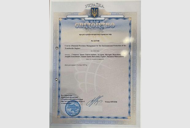 Директор Волинського інституту ім. В. Липинського Л.М. Горбач отримала свідоцтво про реєстрацію права на твір № 115748 - статтю "Financial Provision Management for the Environmental Protection of the Transborder Region" опубліковану у збірнику наукових праць "Financial and Credit Activity: Problems of Theory and Practice". Видання індексується у міжнародній наукометричній базі даних Web of Science, внесене до категорії А переліку фахових видань України та міжнародного каталогу журналів відкритого доступу DOAJ.