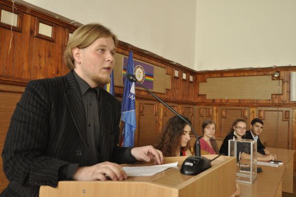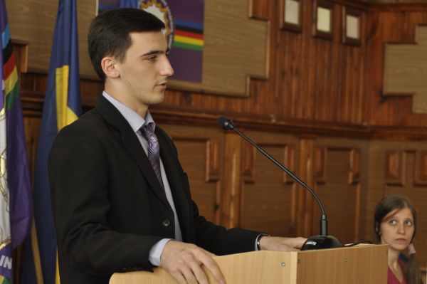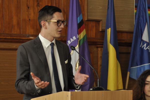 Далі зі звітом про виконану роботу виступив попередній голова Студентської ради студент 4-го курсу Українсько-Арабського інституту міжнародних відносин та лінгвістики імені Аверроеса МАУП Руслан Бобир.