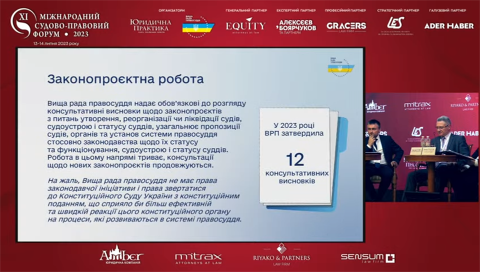 В період з 13-14 липня 2023 року доцент кафедри цивільно-правових дисциплін та міжнародного права ННІП Куртакова Г.О. взяла участь у XІ Міжнародному судово-правовому форумі який проходив за такими сесіями: