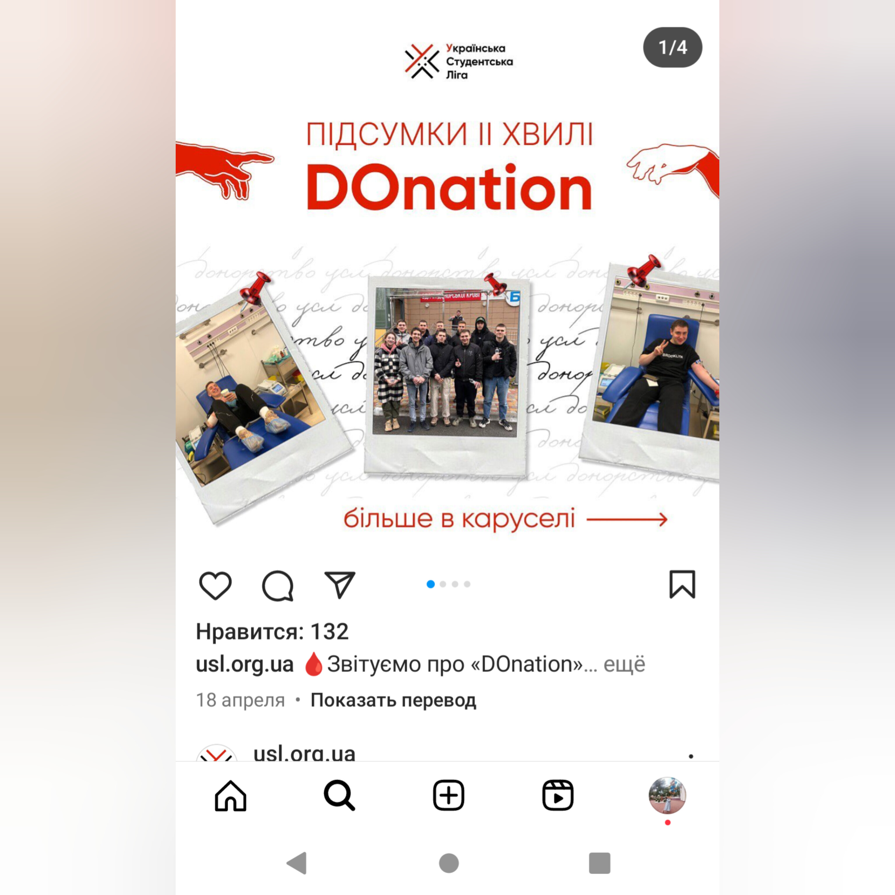 Студенська рада ННІП долучилася до проекту "DOnation" від УСЛ спільно з Центром служби крові НДСЛ, Охмадитом та Біофарма плазма.