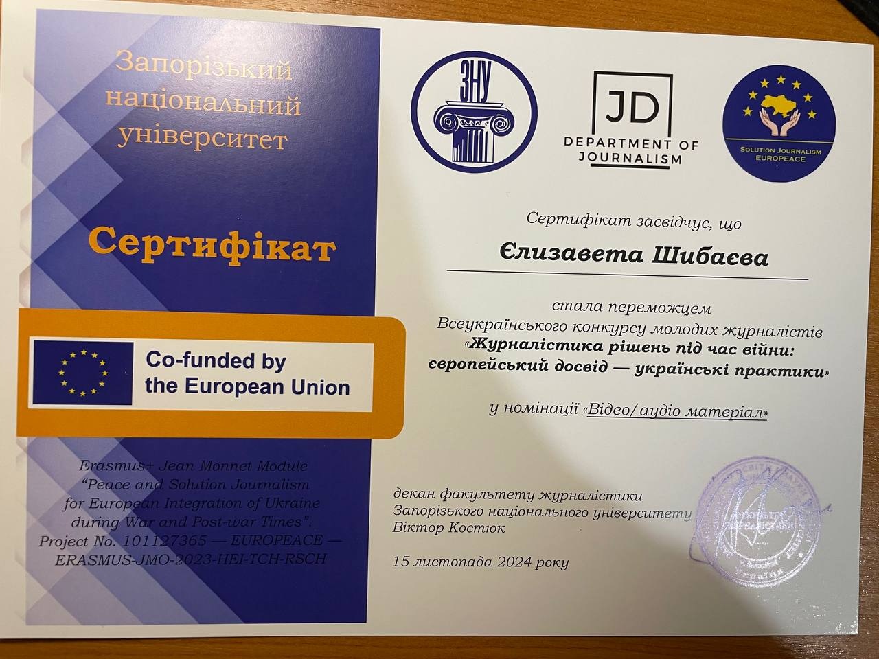 В листопаді та грудні 2024 року, одна за одною, дві здобувачки вищої освіти кафедри журналістики Навчально-наукового інституту психології та соціальних наук МАУП Єлизавета Шибаєва (4 курс) та Оксана Мельник (2 курс) стали переможницями в двох Всеукраїнських фахових конкурсах відповідно: у Всеукраїнському конкурсі молодих журналістів "Журналістика рішень під час війни: європейський досвід - українські практики", що був проведений факультетом журналістики Запорізького національного університету за підтримки Європейського Союзу і в ХІ Всеукраїнському конкурсі «З Григорієм Сковородою крокуємо в майбутнє», який пройшов в Університеті Григорія Сковороди в Переяславі.