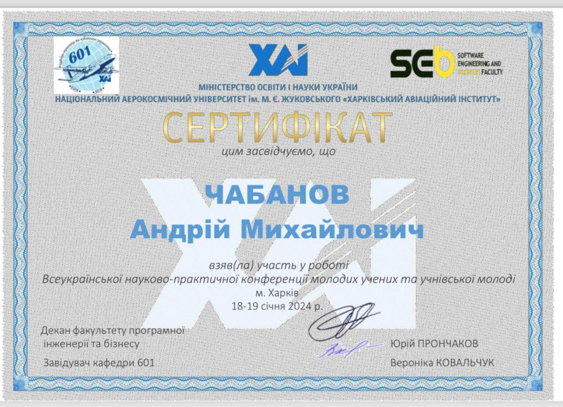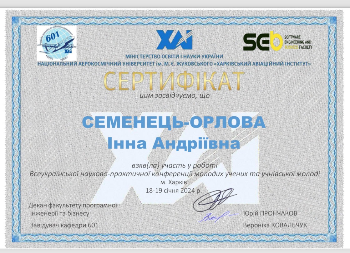 конференції молодих учених «Економіка та публічне управління: нові виклики та рішення». Конференція відбулась 18 – 19 січня 2024 року на факультеті програмної інженерії та бізнесу, кафедра економіки та публічного управління Національного аерокосмічного університету ім. М.Є. Жуковського «ХАІ».
