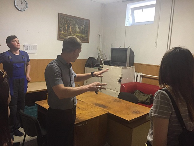 Керівник підприємства Сергій Валерійович Бавицький багато і змістовно розповідав про основні завдання підприємства, до яких відносяться охорона майна фізичних та юридичних осіб, у тому числі охорона та супровід вантажів, захист від злочинних посягань на об’єкти різних форм власності. Цікаво було дізнатись, що (а головне — як!) підприємство забезпечує проектування і монтаж, обслуговування і експлуатацію технічних систем охорони, контролю доступу і відеоспостереження, периметральну охорону. Бавицький С. В. провів екскурсію підприємством, і ми побачили, де і як проводиться прийом громадян, клієнтів, укладаються договори, як працюють диспетчери.