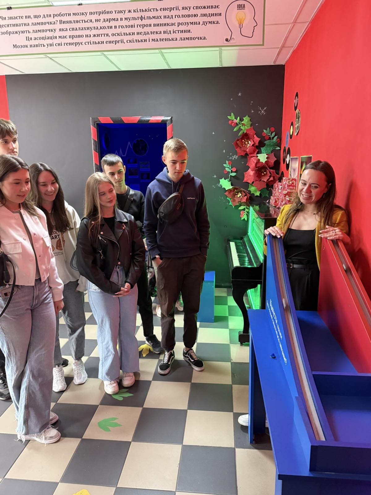 Під час екскурсії студенти мали змогу ознайомитися з інтерактивними експонатами музею, серед яких – анатомічні моделі людини, оптичні ілюзії, фізичні та хімічні досліди, лазерний та дзеркальний лабіринти. Найбільше зацікавлення викликала практична частина, де учасники долучилися до простих наукових експериментів і міні-моделювань, що ілюстрували економічні та управлінські процеси.