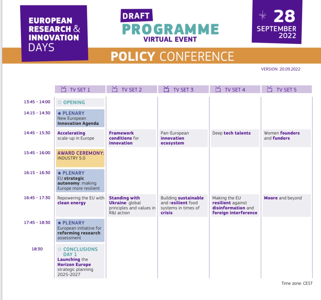 Це щорічна головна подія Європейської Комісії з досліджень та інновацій, яка збирає політиків, дослідників, підприємців і громадськість для обговорення та формування майбутніх досліджень та інновацій у Європі та за її межами.