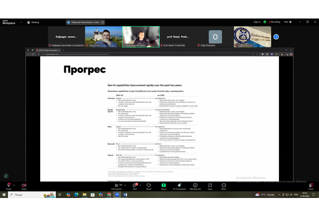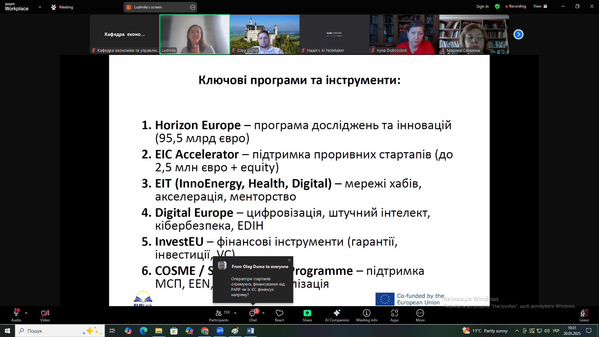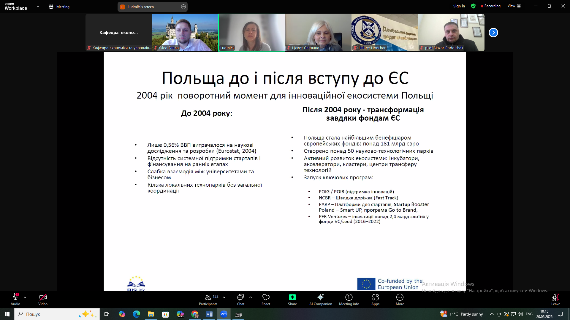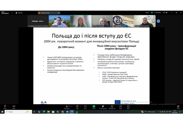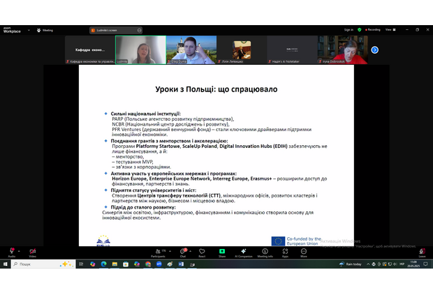 У травні 2025 року кафедра економіки та управління взяла участь у Весняній школі «Європейський досвід розвитку стартапів: зв’язок з найкращими практиками», що проходила в межах проєкту Jean Monnet ERASMUS-JMO-2022-MODULE 101085767 "Ukrainian academic integration to European Union Startup Ecosystem: link to best practices" (EUSLink). Школа відбулася у чотири сесії: 20, 22, 27 та 29 травня.