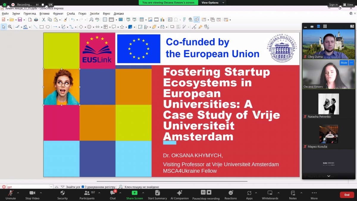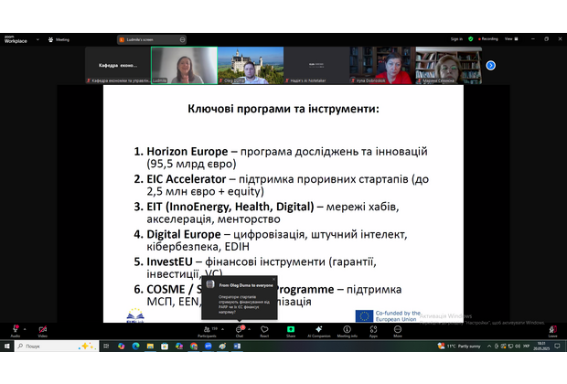 Особливу увагу було приділено взаємозв’язку між освітніми інституціями та підприємницьким сектором, а також можливостям для українських студентів, дослідників і молодих підприємців у межах програм ЄС.