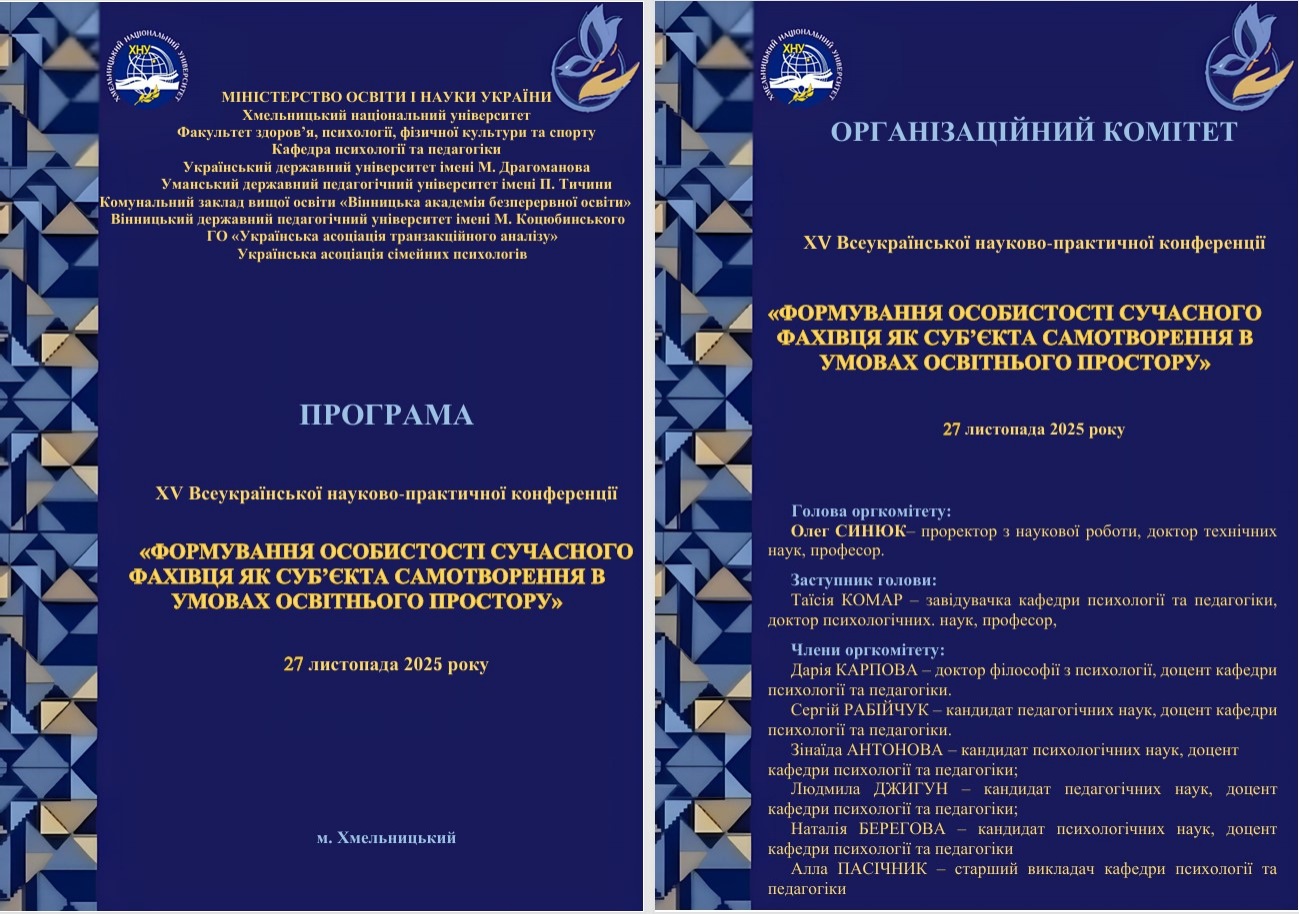 27 листопада 2025 року студенти-психологи 4 курсу бакалаврату денної форми навчання Анастасія Руденко і Анастасія Косінська взяли участь у ХV Всеукраїнській науково-практичній конференції «Формування особистості сучасного фахівця як суб’єкта самотворення в умовах освітнього простору».