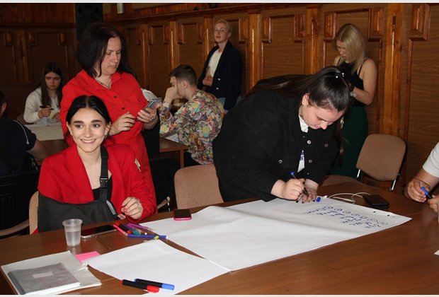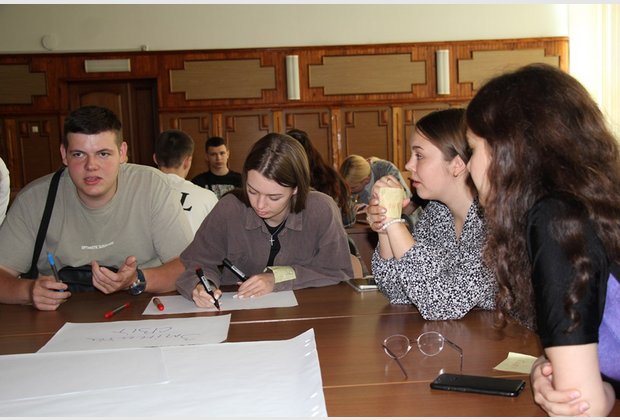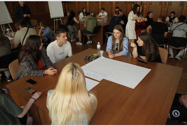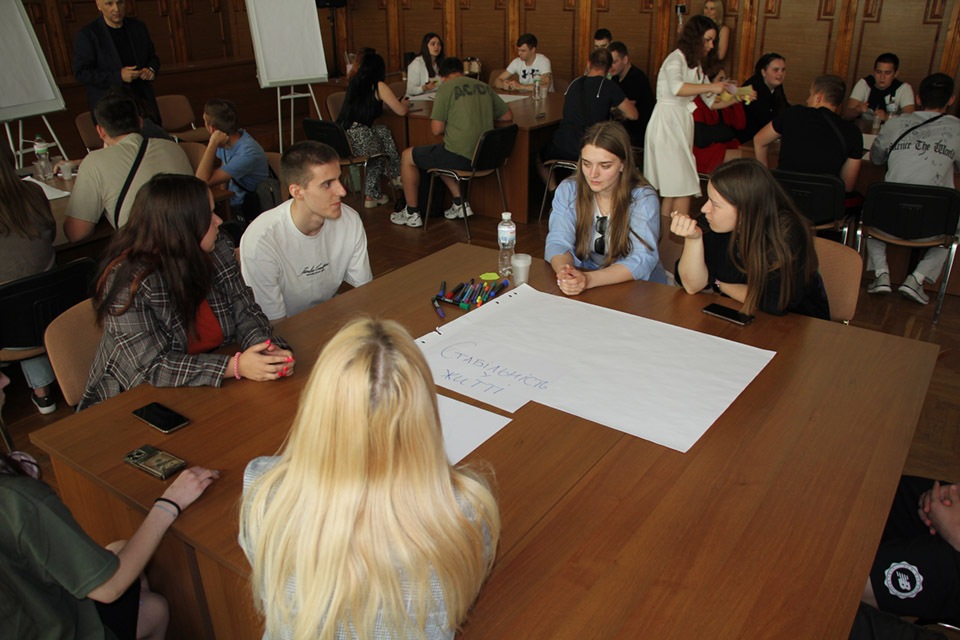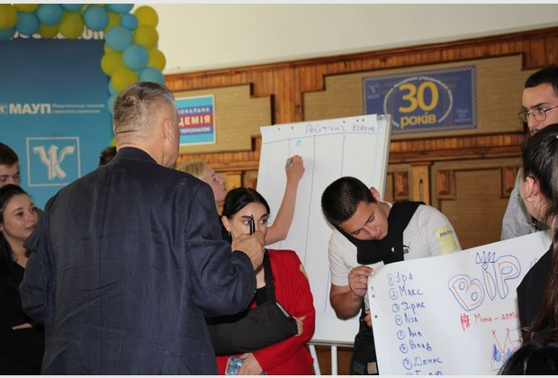 Захід продовжився різними видами командної роботи - на розбудову командного лідерства та розвиток навичок креативності. Студенти активно продукувати ідеї про величну місію післявоєнної України у світі, роль молоді у процесах післявоєнного відновлення, те, що Україна принесе кожному громадянину, щоб зробити його щасливим.