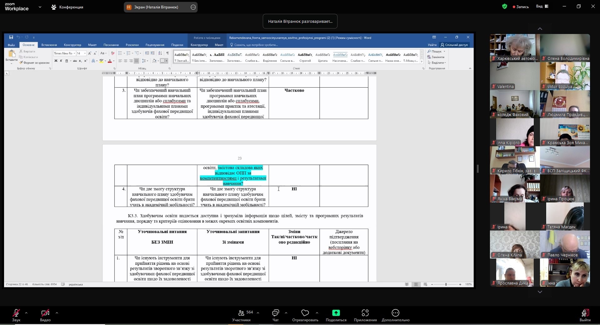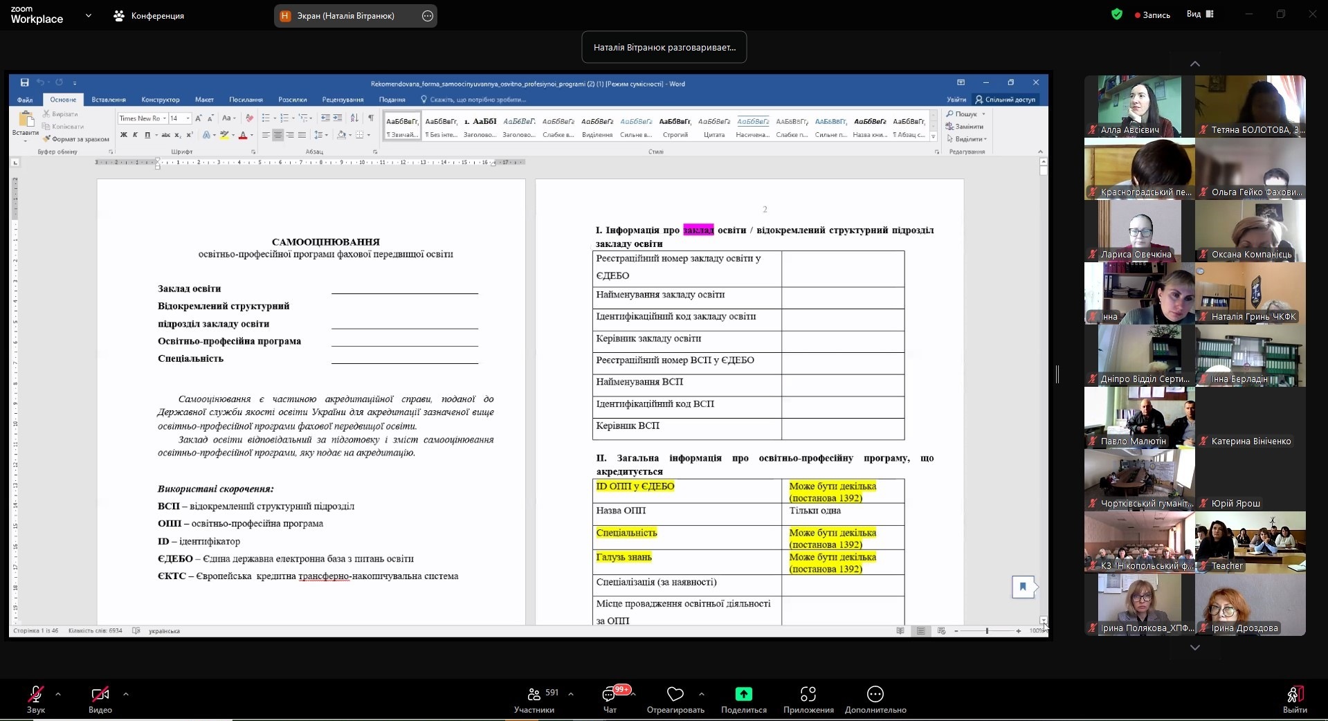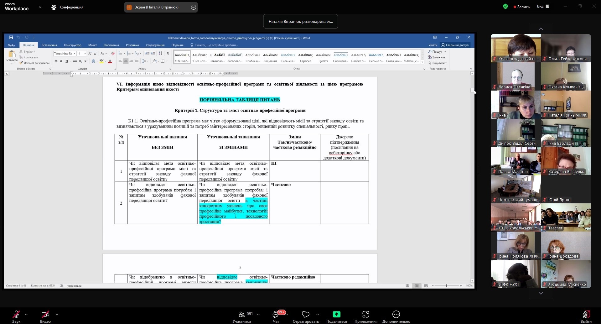 У фокусі уваги зібрання – зміни у переліку уточнювальних питань до критеріїв оцінювання якості освітньо-професійної програми (далі – ОПП) у сфері фахової передвищої освіти, внесені наказом Державної освітньої установ «Навчально-методичний центр з питань якості освіти» від 24 вересня 2024 року № 58-к.