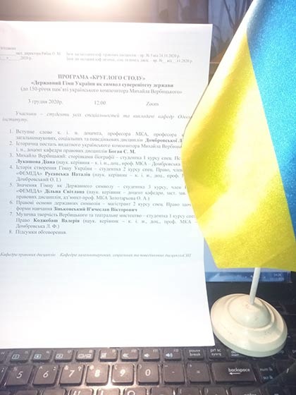 В Одеському інституті відбувся "круглий стіл" на платформі Zoom на тему "Державний Гімн України як символ суверенітету держави" - до 150-річчя пам'яті українського композитора Михайла Вербицького. Захід був організований студентськими науковими Клубами, але в ньому взяли участь і викладачі. Основну доповідь "Історична постать видатного українського композитора Михайла Вербицького" зробив к.і.н.,доцент кафедри правових дисциплін, ст.науковий співробітник Одеського історико-краєзнавчого музею Сергій Боган. З доповідями виступили члени Клубів, студенти 1-3 курсів, обговорили біографію композитора, історію створення Гімну, його значення як Державного символу, правові основи державних символів, музичну та театральну творчість Миколи Вербицького. В обговоренні взяли участь викладачі. Захід мав чудові емоційні фарби, пройшов дуже активно, на високому патріотичному рівні. Обговорення проблем українських символів, зокрема очікування Великого Гербу до 30-річчя України, продовжилося і після завершення "круглого столу".
