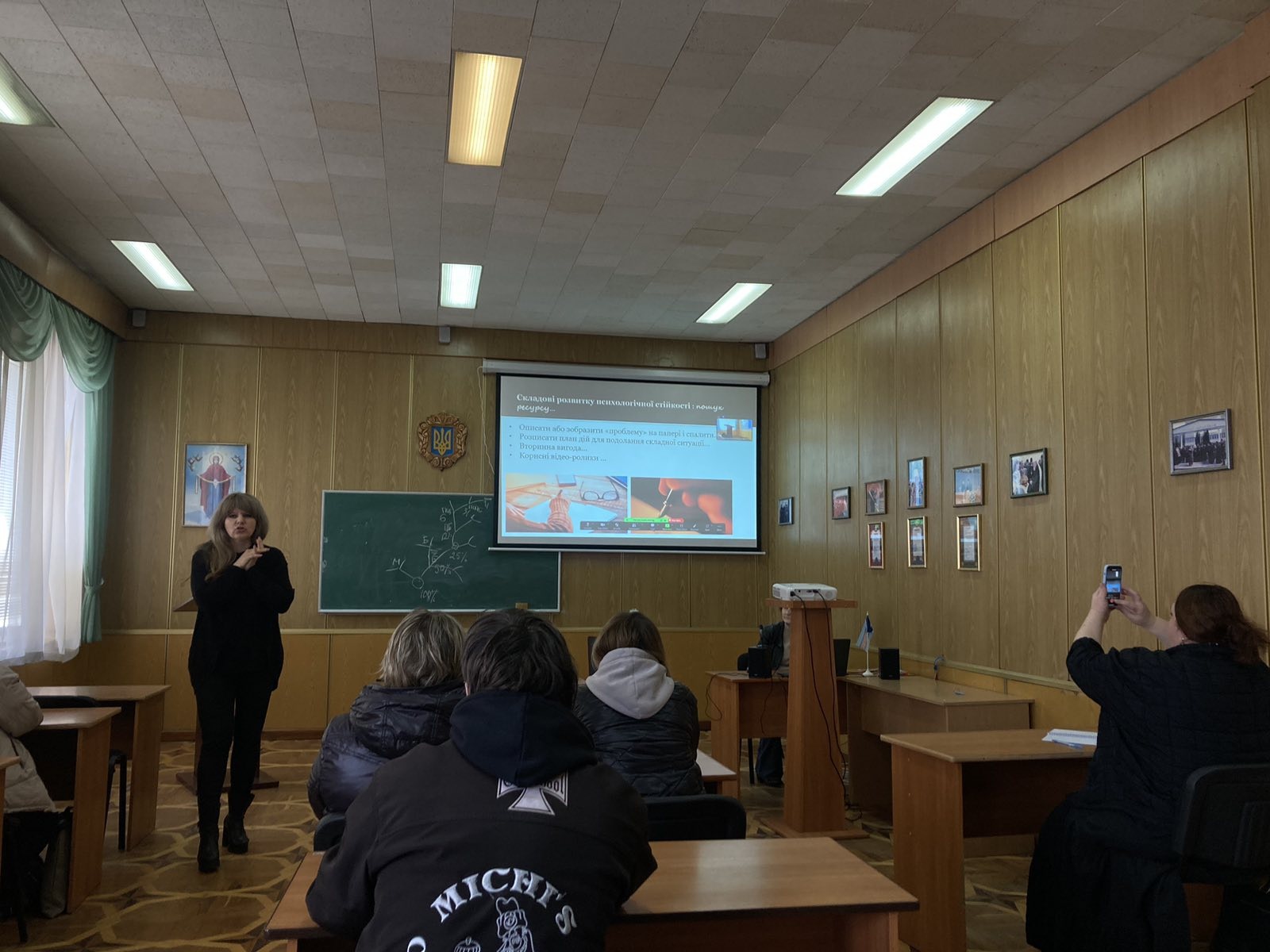 Під час лекції Наталія Чорна розповіла про посттравматичний стресовий синдром та інші психологічні проблеми (психологічні травми; колективна травма; звернення до внутрішніх ресурсів; наслідки тощо), з якими стикаються ветерани війни та їхні сім’ї.