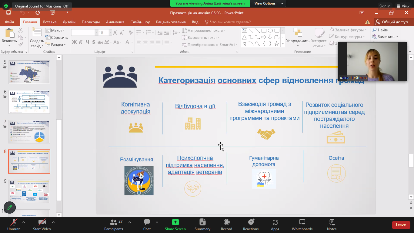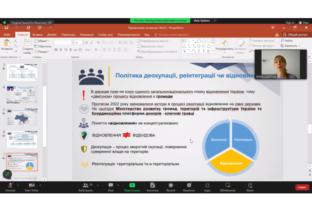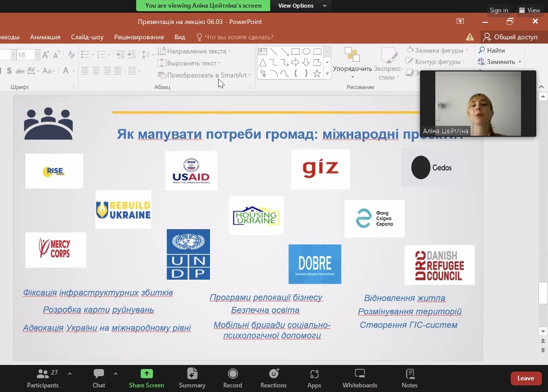 Відбулася гостьова лекція експертки швейцарсько-українського проєкту DECIDE, PhD у галузі Публічне управління та адміністрування Аліни Цейтліни для студентів 1,2 курсів кафедри публічного адміністрування МАУП на тему: «Місцеве самоврядування в умовах війни: виклики для громад та напрями відновлення».