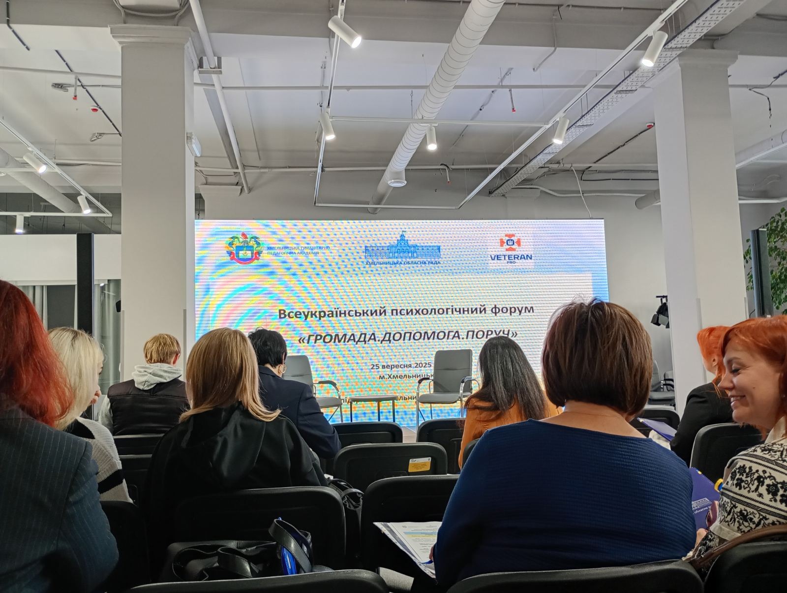 25 вересня 2025 року студенти-психологи 1-4 курсів денної форми навчання та викладачі кафедри психології Хмельницького інституту МАУП взяли участь офлайн і онлайн у Всеукраїнському психологічному форумі «ГРОМАДА. ДОПОМОГА. ПОРУЧ».