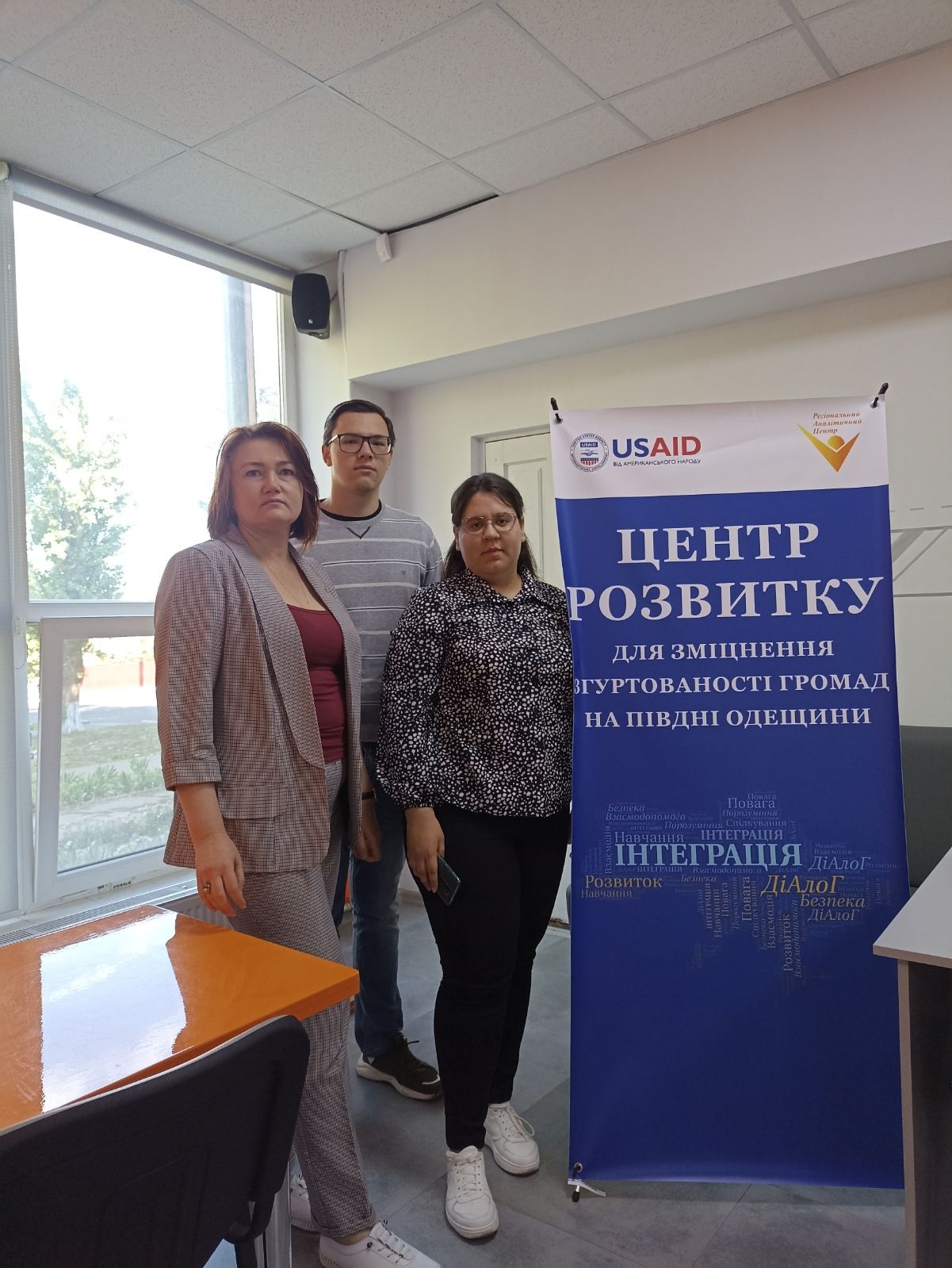 Здобувачі вищої освіти кафедри «Економіки та менеджменту» Придунайської філії ПрАТ "ВНЗ "МАУП" Гайдаєнко Д., Бошкова А., Левченко А. та викладач Приходько О. Ю. взяли участь у тренінгу, що реалізується громадською організацією «Регіональний аналітичний центр» в межах проєкту «РАЦ Центр розвитку для зміцнення згуртованості громад на півдні Одещини» за підтримки Агентства США з міжнародного розвитку (USAID).