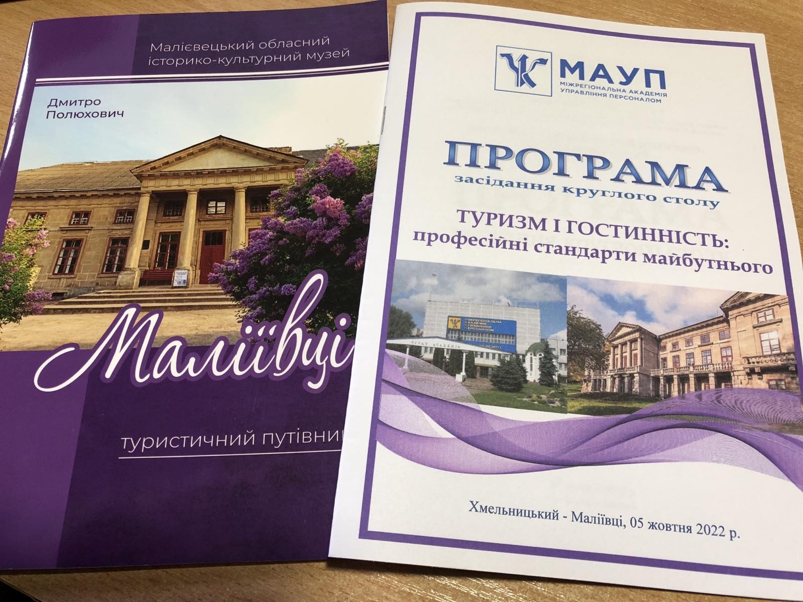 5 жовтня 2022 року відбулося виїзне засідання круглого столу «Туризм і гостинність: професійні стандарти майбутнього» яке організоване кафедрою економіки, управління та туризму Хмельницького інституту МАУП та Малієвецьким обласним історико-культурним музеєм.