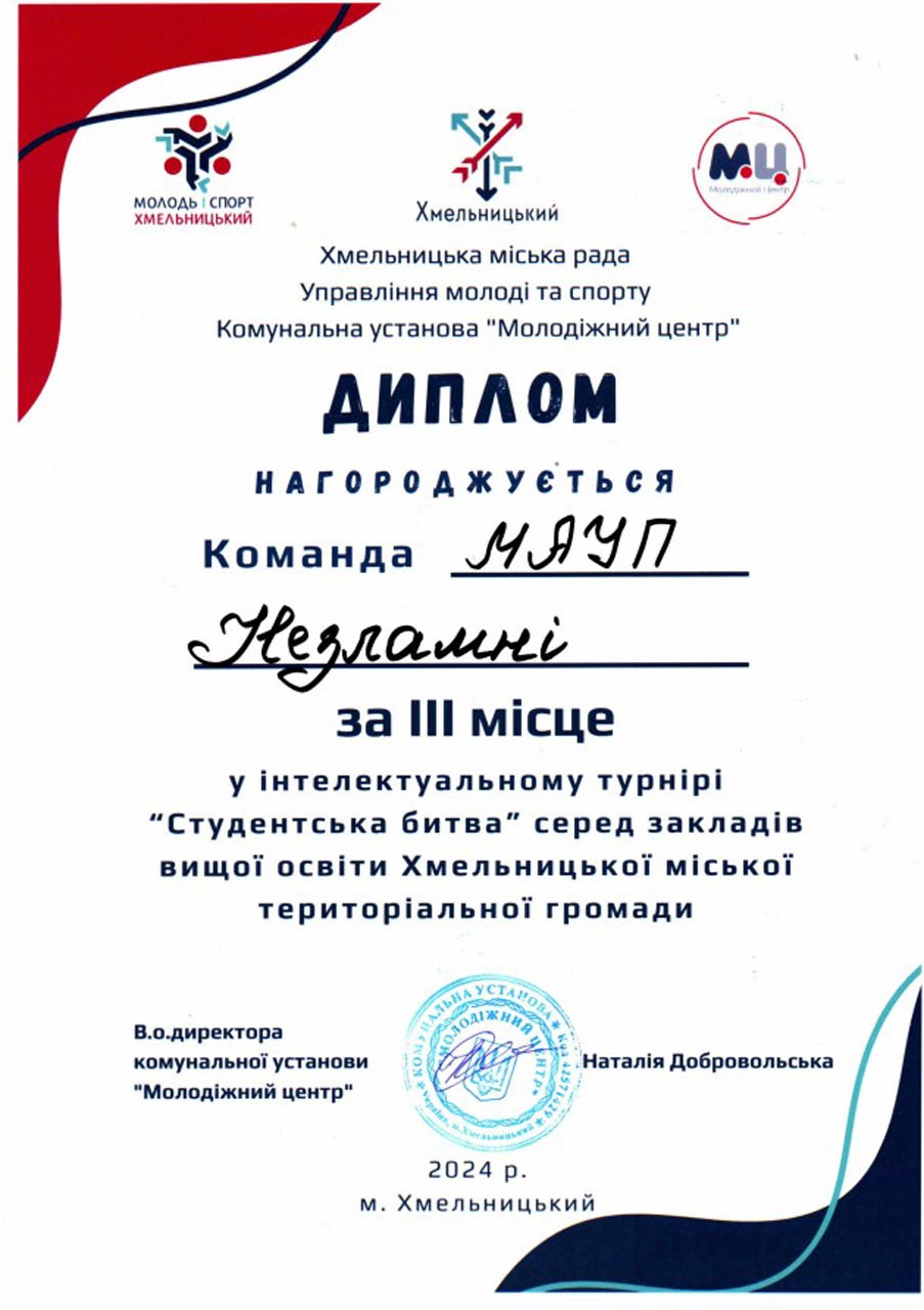 Хмельницький інститут МАУП серед переможців «СТУДЕНТСЬКОЇ БИТВИ – 2024»