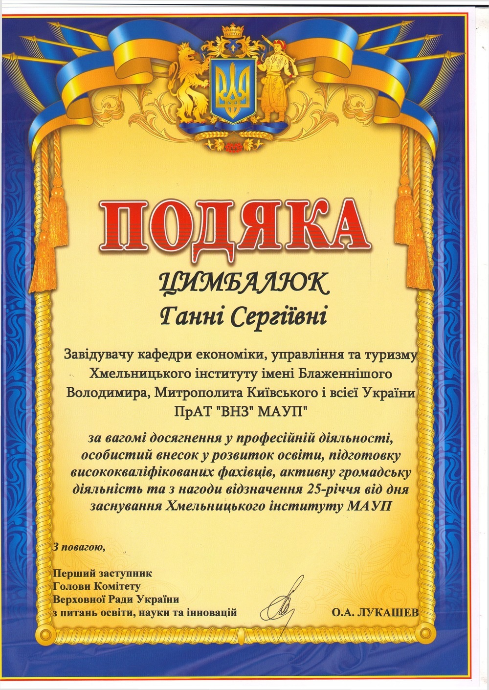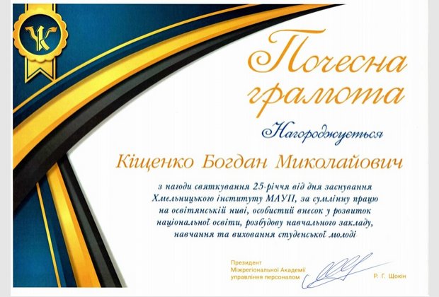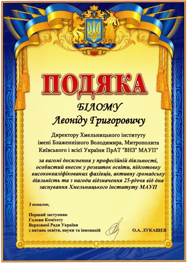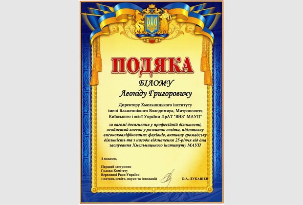 - ректора Хмельницького університету економіки і підприємництва Желавського Олега Борисовича;