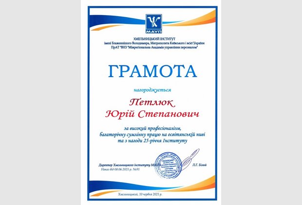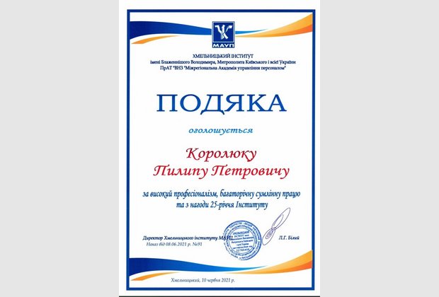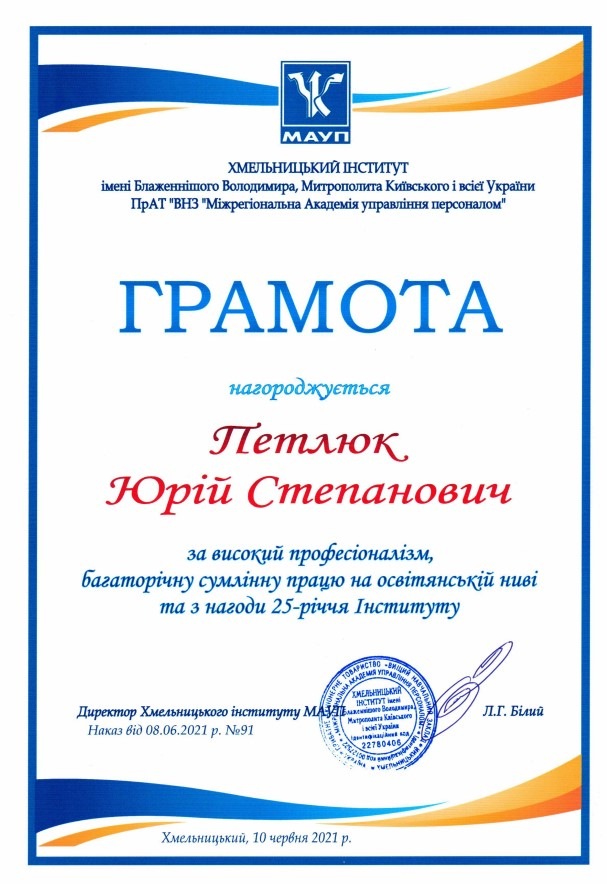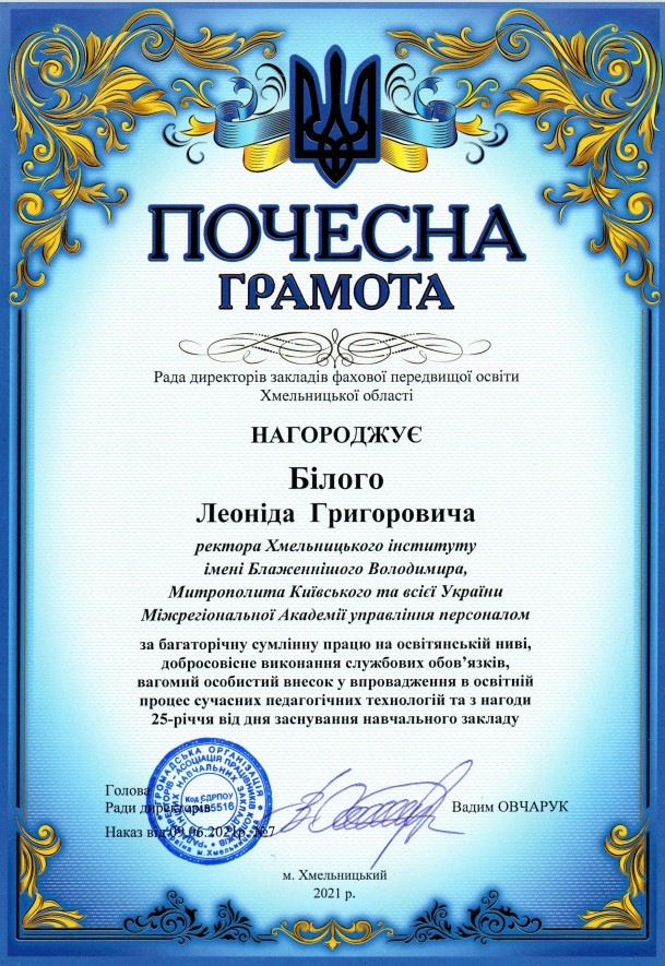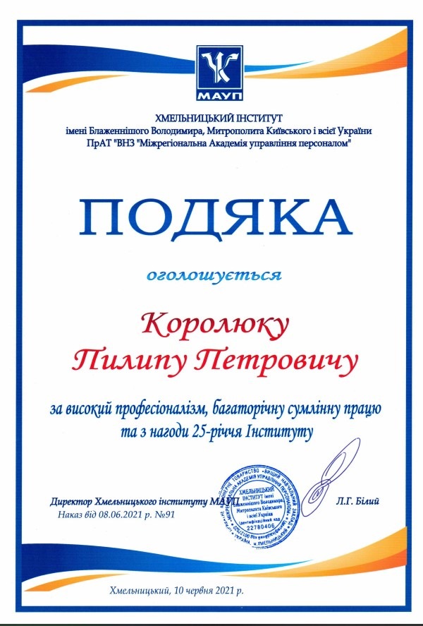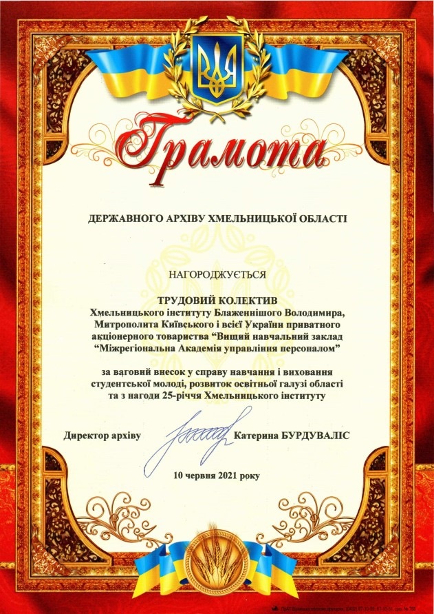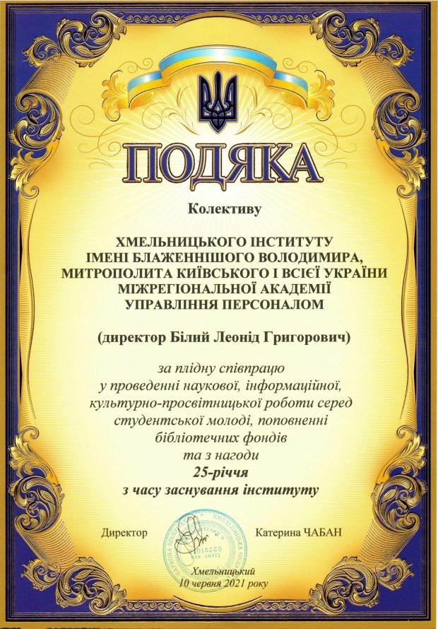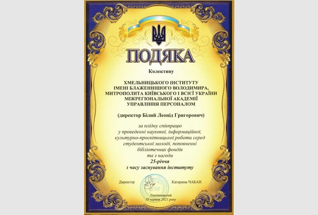 Хмельницький інститут імені Блаженнішого Володимира, Митрополита Київського і всієї України Міжрегіональної Академії управління персоналом відсвяткував 25-річний ювілей.