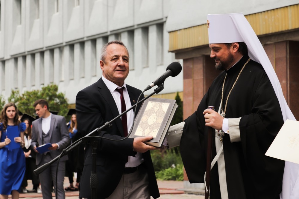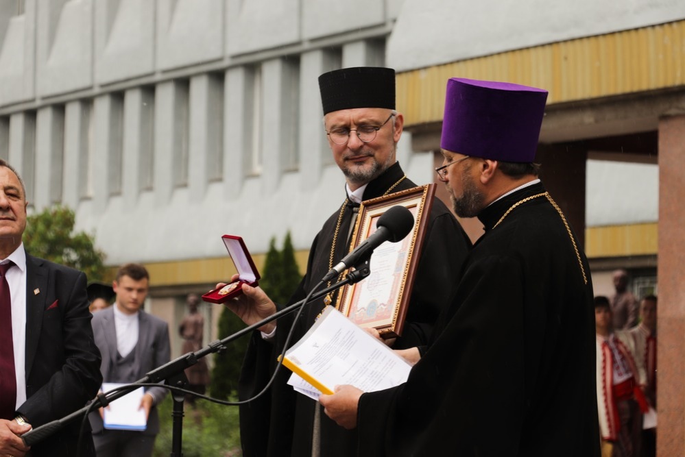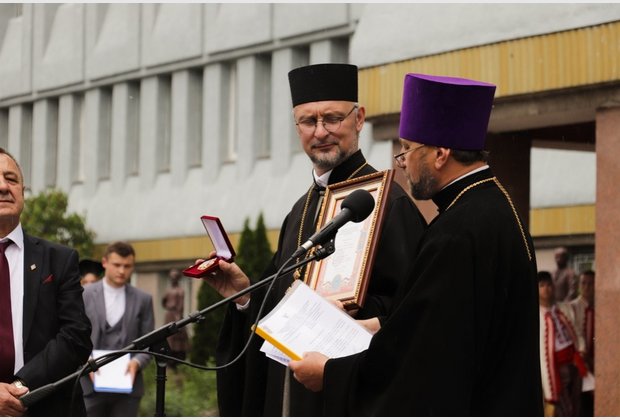 Від імені Митрополита Хмельницького та Старокостянтинівського Антонія – керуючого Хмельницькою єпархією Української Православної Церкви вітальне слово проголосив протоієрей Петро (Задвірний) та вручив колективу Інституту Орден преподобного Нестора Літописця І ступеня.