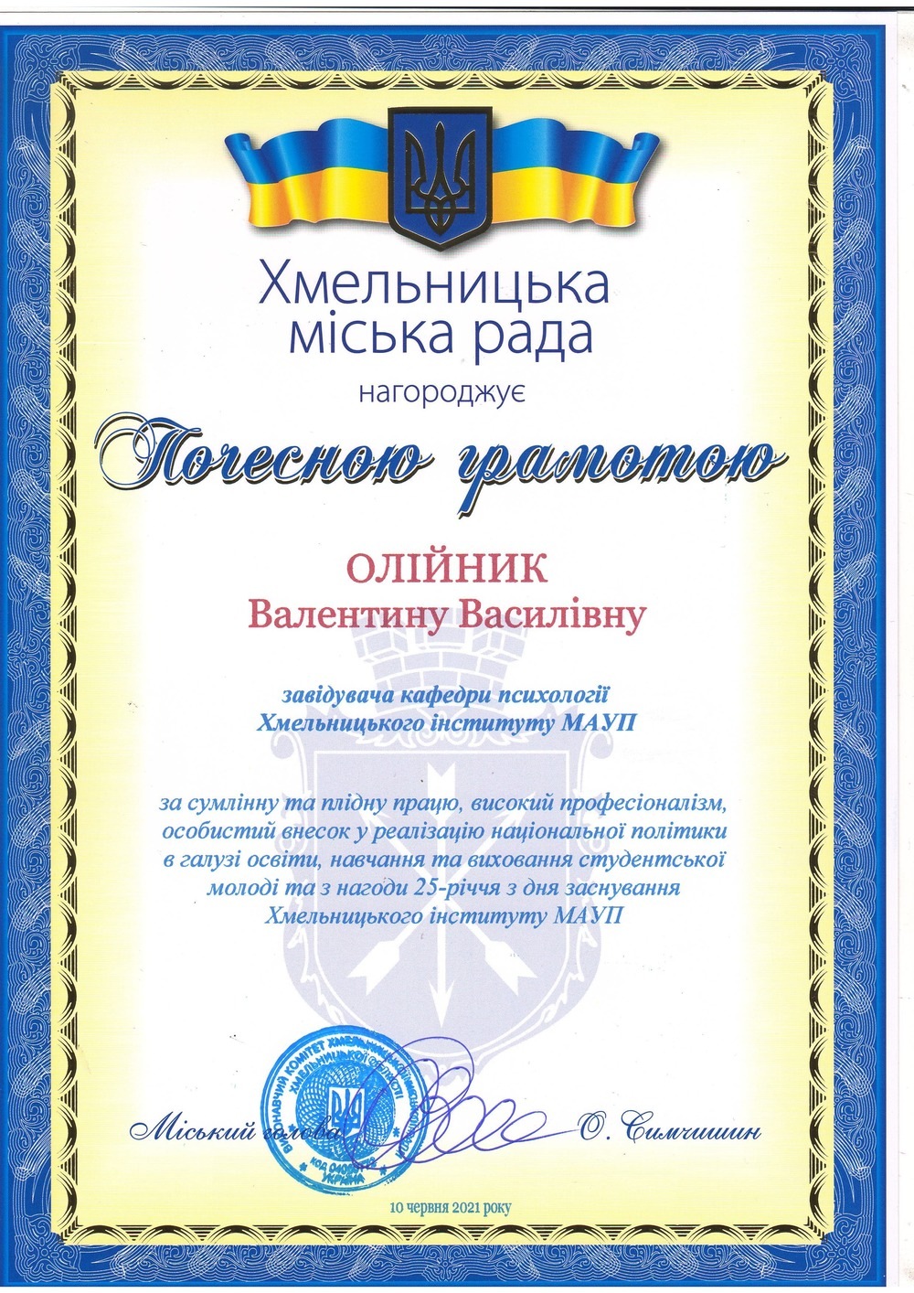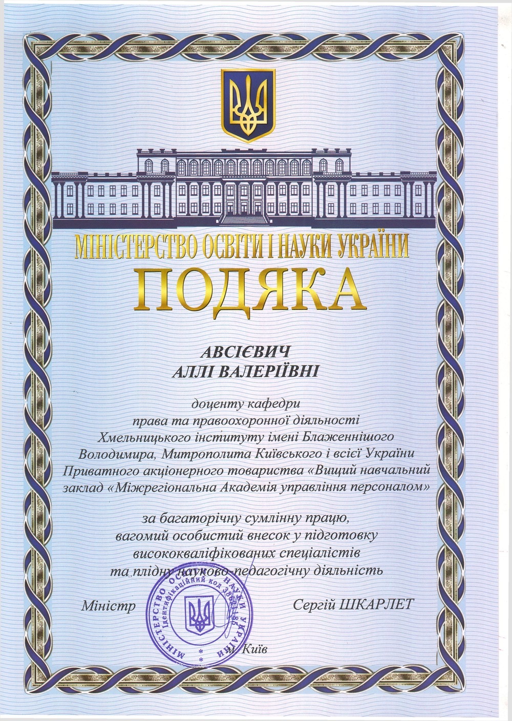 - проректора Хмельницького інституту соціальних технологій Університету «Україна» Приступу Миколу Івановича;