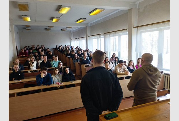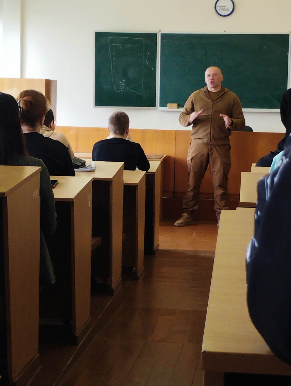 Боєць «Тренер» розповів студентам, що Третя окрема штурмова бригада сформована на тих самих принципах, на яких стоїть легендарний «Азов» та весь Азовський рух. Базові світоглядні засади азовських підрозділів – україноцентризм, традиціоналізм, ієрархія й відповідальність. Пройшовши складний відбір, до лав бригади потрапляють лише високомотивовані та сильні духом бійці, готові до постійного вдосконалення та важких боїв з ворогом на передовій.