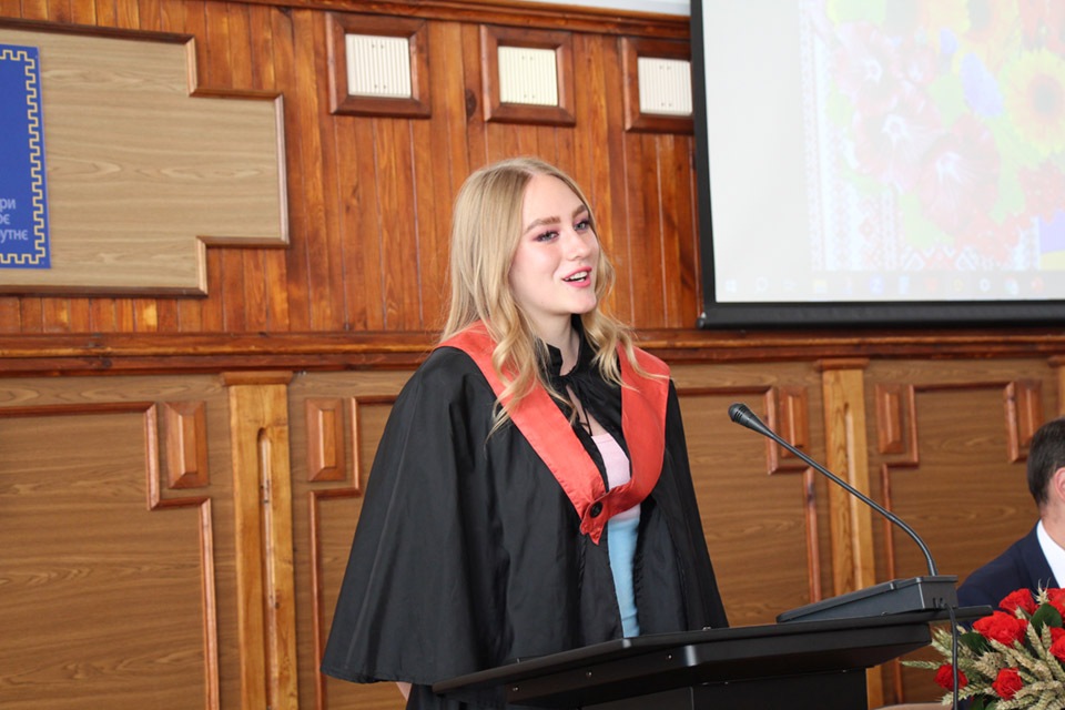 Також, із словами подяки від студентів-випускників науково-педагогічному колективу виступила випускниця бакалаврату за спеціальністю “Економіка та управління бізнесом” - Дяченко Вікторія.