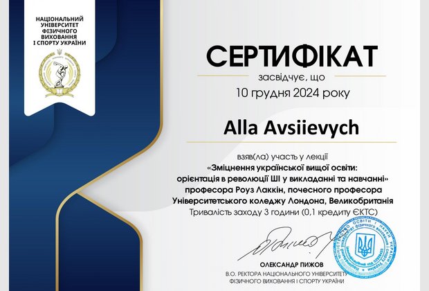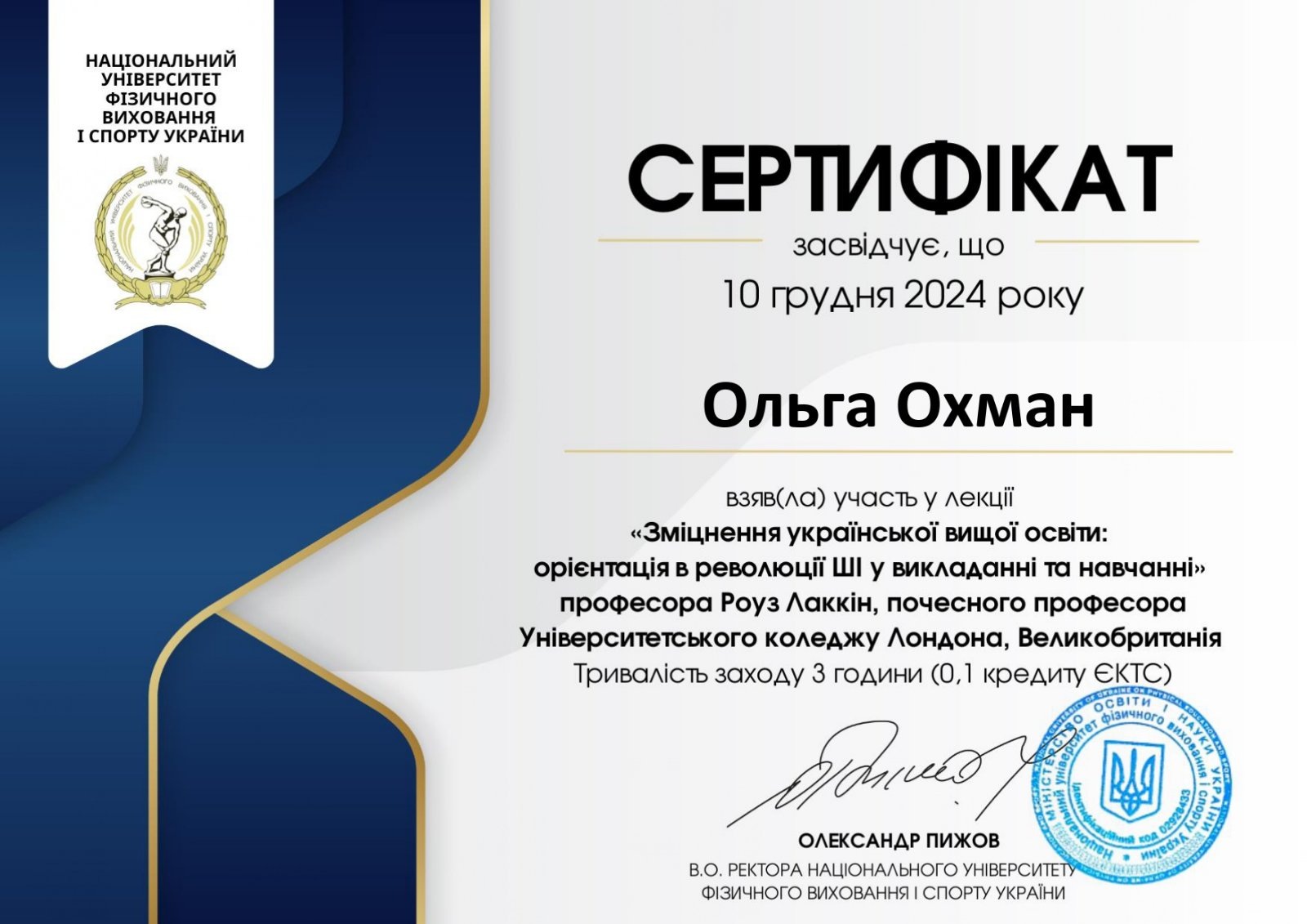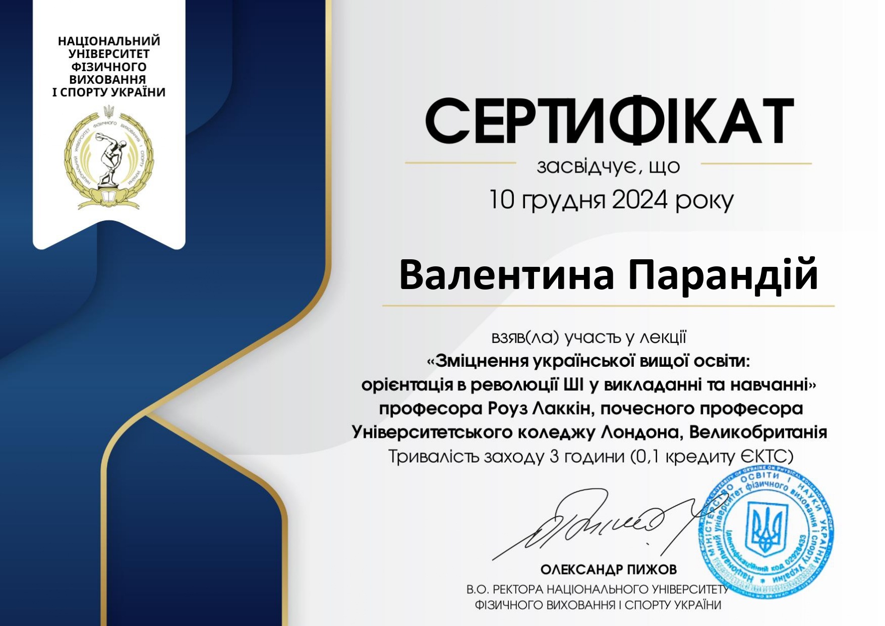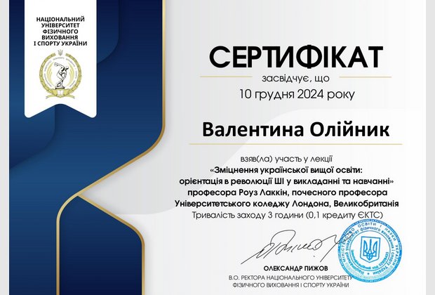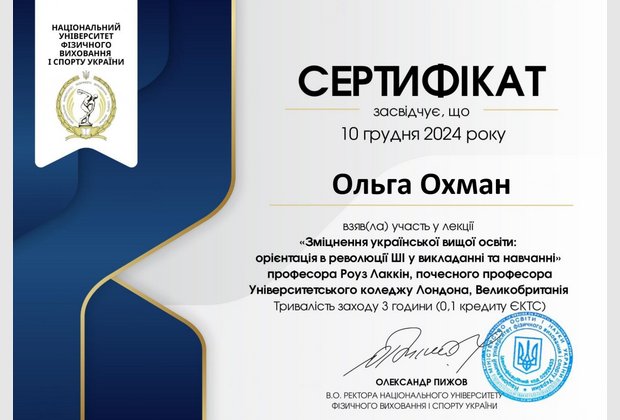 Усі учасники: Валентина Парандій, Ольга Охман, Оксана Данько, Ганна Цимбалюк, Валентина Олійник, Алла Авсієвич – отримали сертифікати, що підтверджують факт участі в лекціях із зазначенням 0,1 кредиту ЄКТС.
