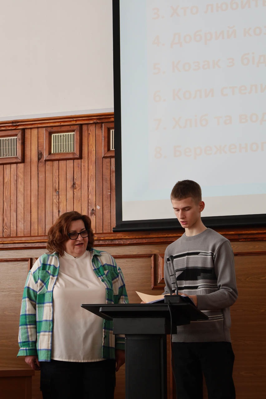 Прокопенко Світлана Іванівна, заступниця директора Голосіївського економіко-правового фахового коледжу та чарівна ведуча нашого заходу, відкрила початок конкурсу зі слів, які нагадали, що наша спільна любов до України – це не лише патріотизм, а й глибоке знання її історії, традицій та культури, а також зазначила, що конкурс присвячений усім тим, хто живе в Україні, тим, хто любить Україну, тим, хто прагне бачити її мирною і квітучою і робить все для цього, всій великій українській родині і генію українства – великому Кобзарю.