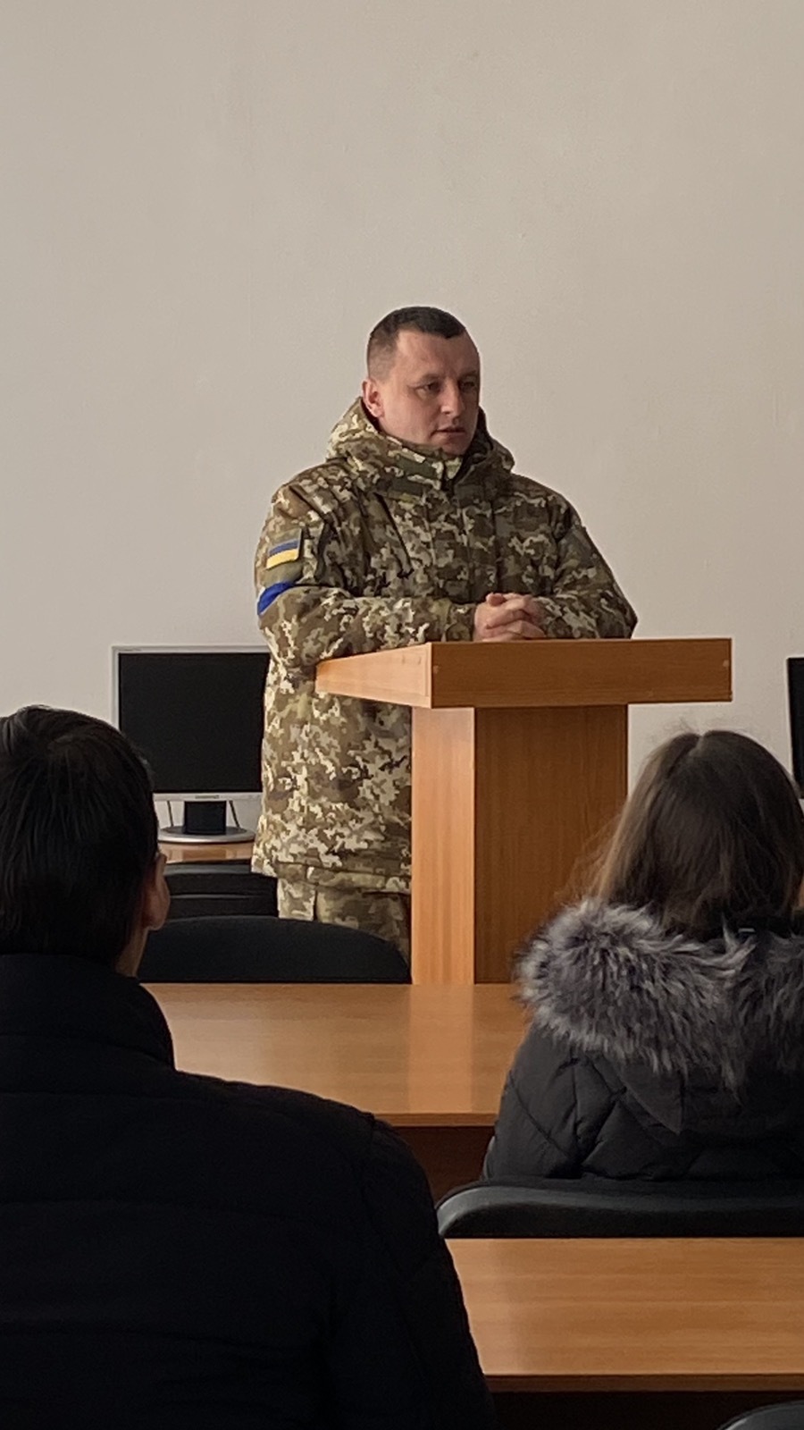 Зустріч здобувачів вищої освіти з помічником начальника 17 прикордонного загону імені полковника Олександра Жуковського (м.Ізмаїл), начальником прес-служби Перегняком Ігорем Володимировичем