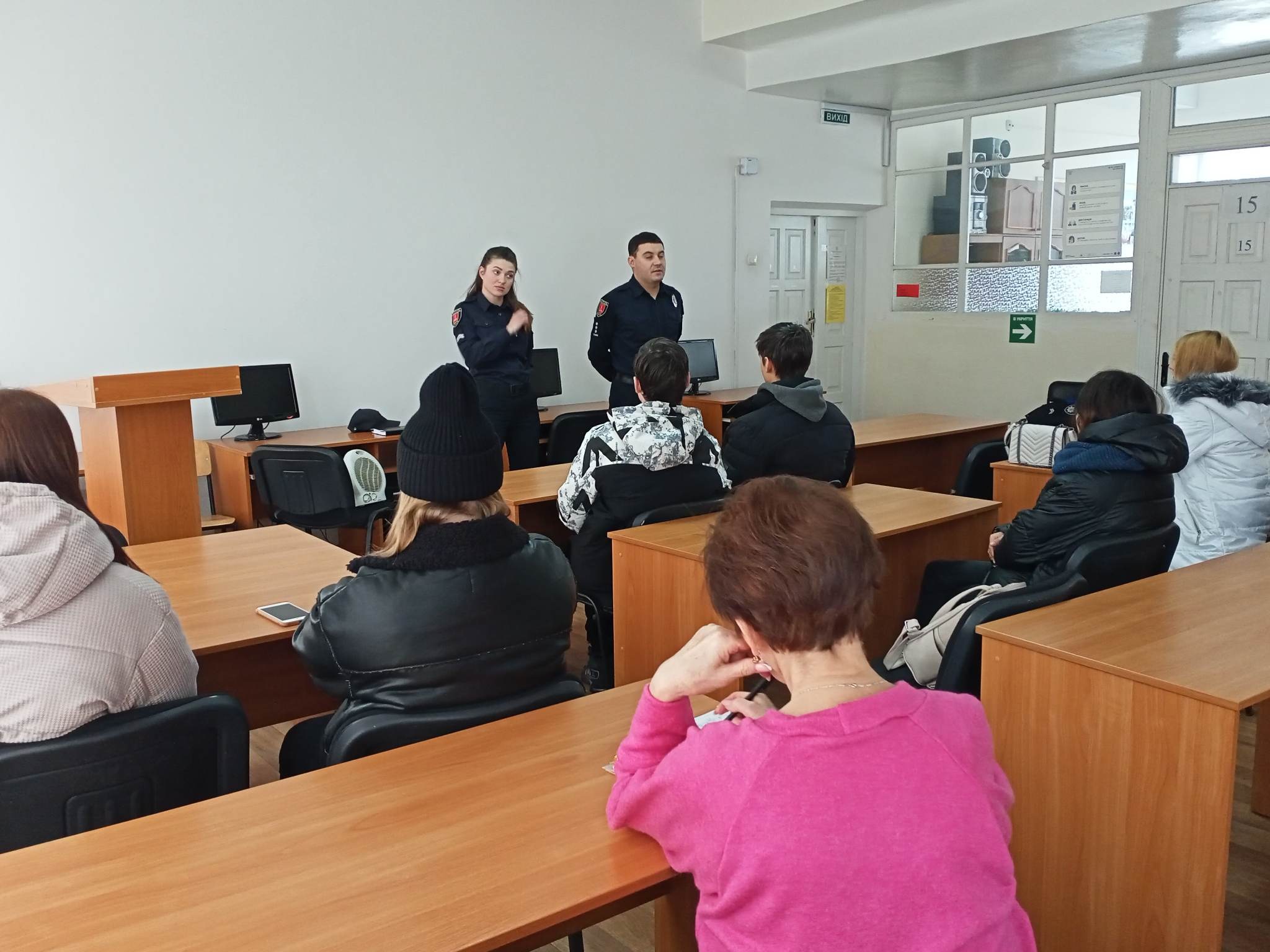 І.Бочевар та М. Четіна ділилися зі студентами досвідом роботи, її специфікою та перевагами. Патрульна поліція забезпечує безперервне та цілодобове виконання своїх завдань, але її робота, перш за все, полягає не в тому, щоб покарати та притягти до відповідальності, а застерегти від вчинення правопорушення. Цікавість студентів привернули правила поведінки в нестандартних ситуаціях та як, захищаючи себе та інших людей, не перевищити межі необхідної оборони. Поліціянти розповіли на прикладах про байдужих людей, які не здатні допомогти іншим в скрутних ситуаціях. Вони переконані, що все починається з небайдужості, бо людська байдужість як і недосконале знання законів то є ворог для нас. Громадяни повинні не тільки викликати швидку допомогу і поліцію в разі неприємного інциденту, але й самі допомогти постраждалому, хоча б морально, тому що невміння надавати першу допомогу потерпілому може привести до тяжких наслідків.