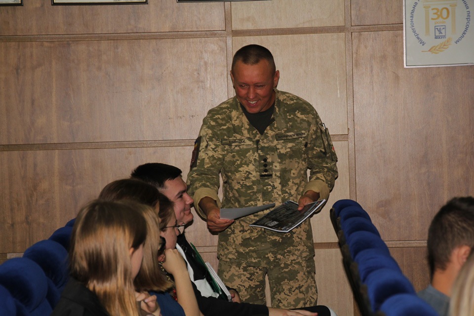 18 жовтня в Міжрегіональній Академії управління персоналом відбулася зустріч студентів Академії з представниками кафедри військової підготовки Національного університету оборони